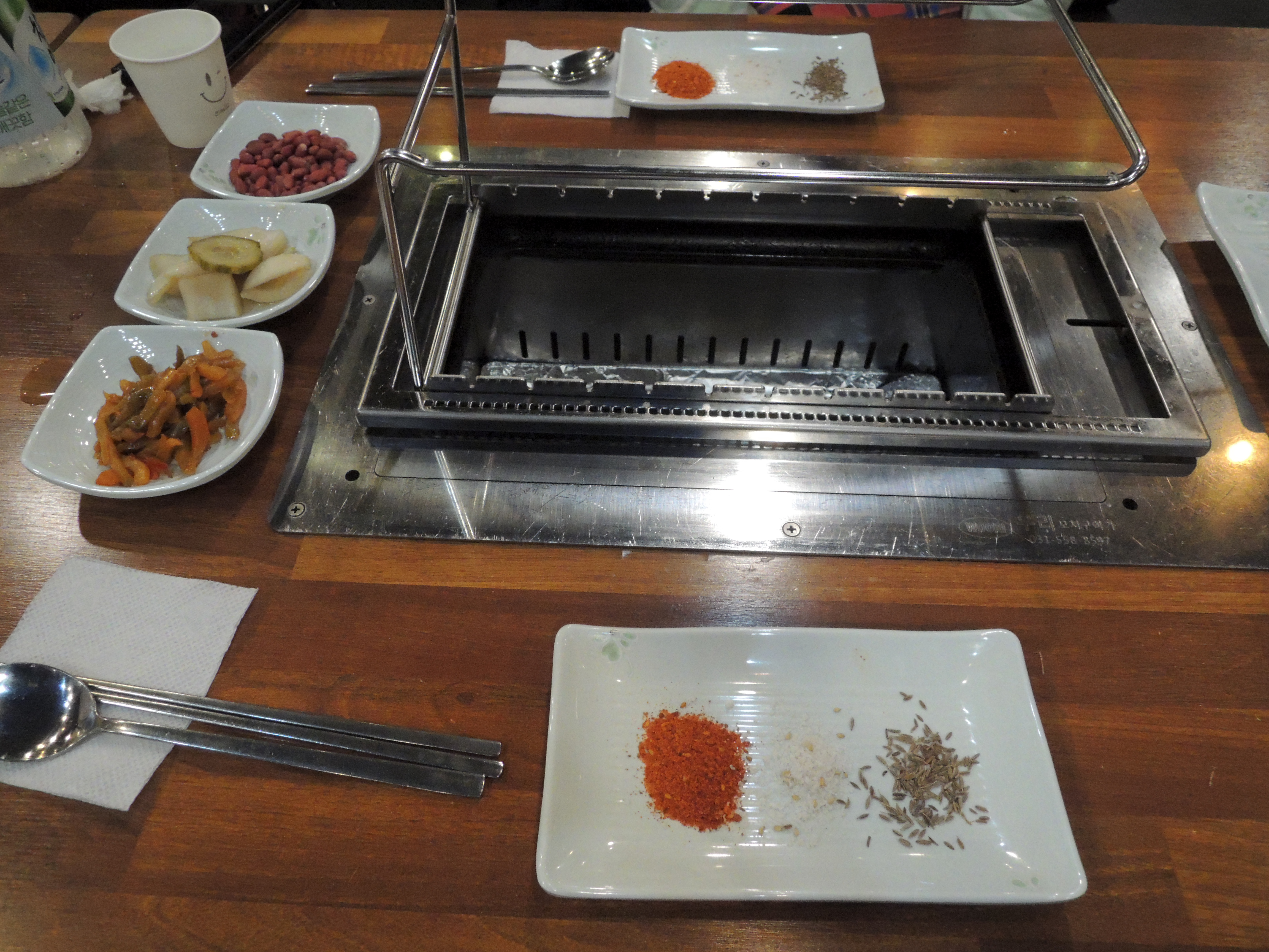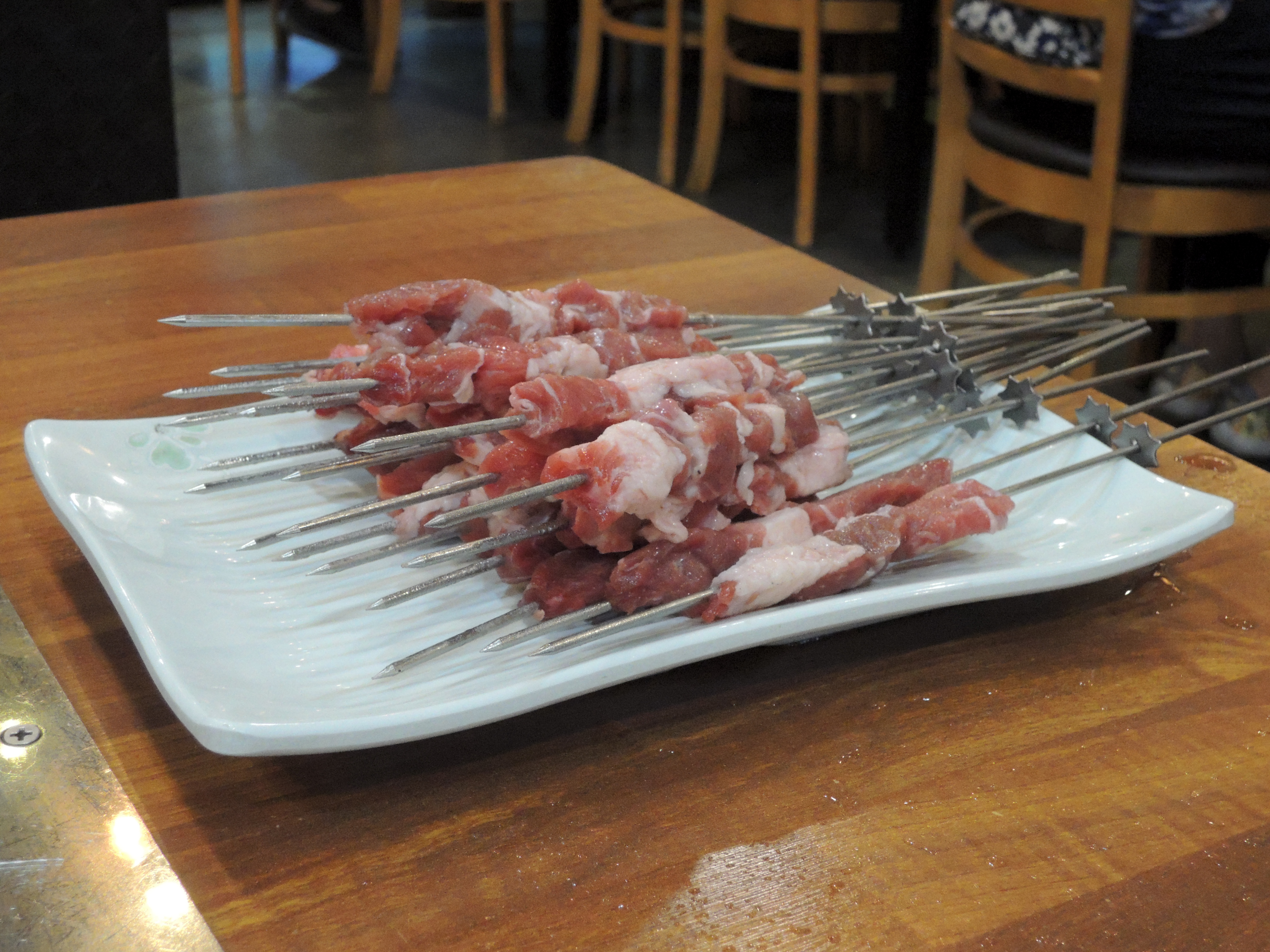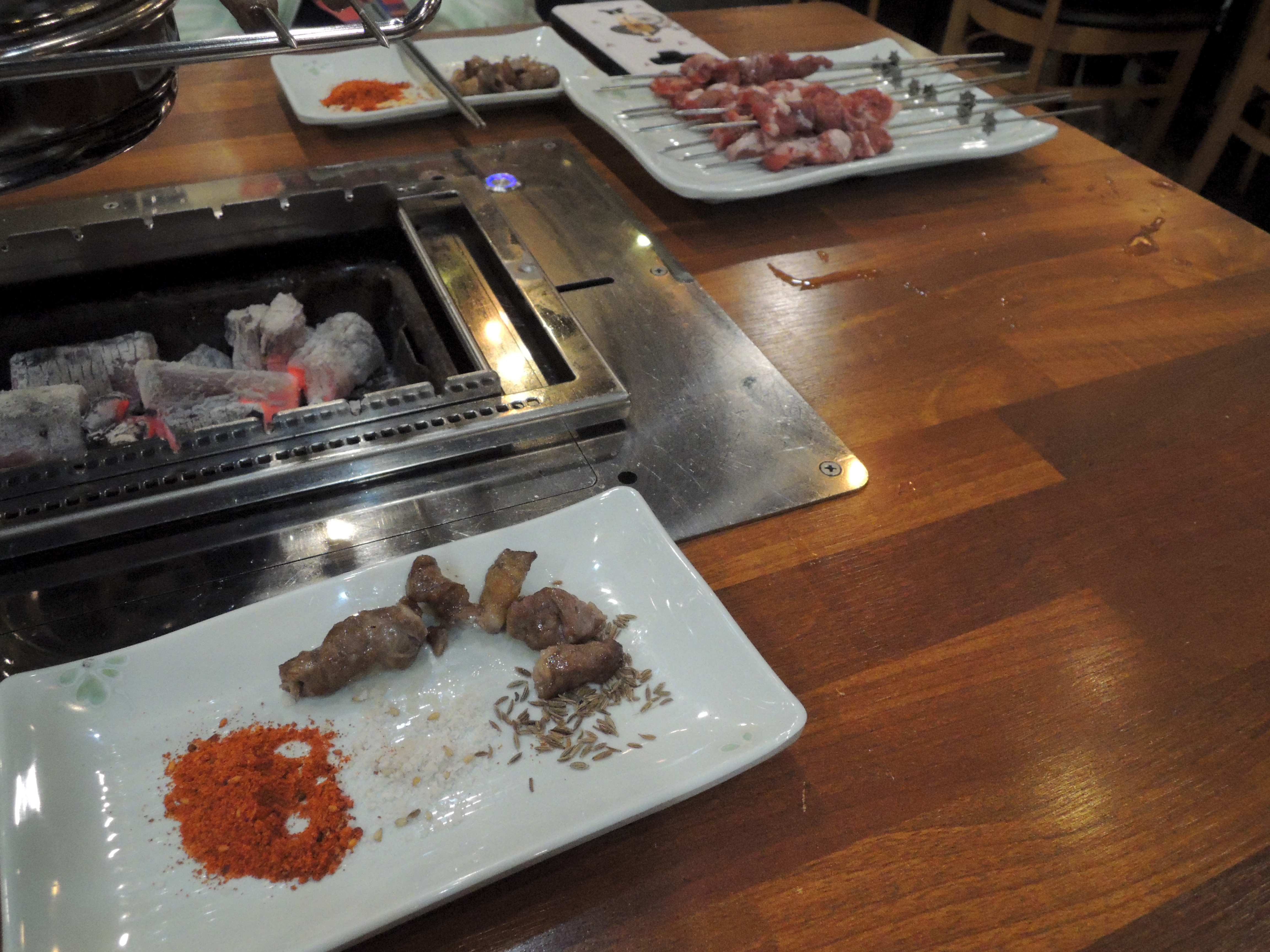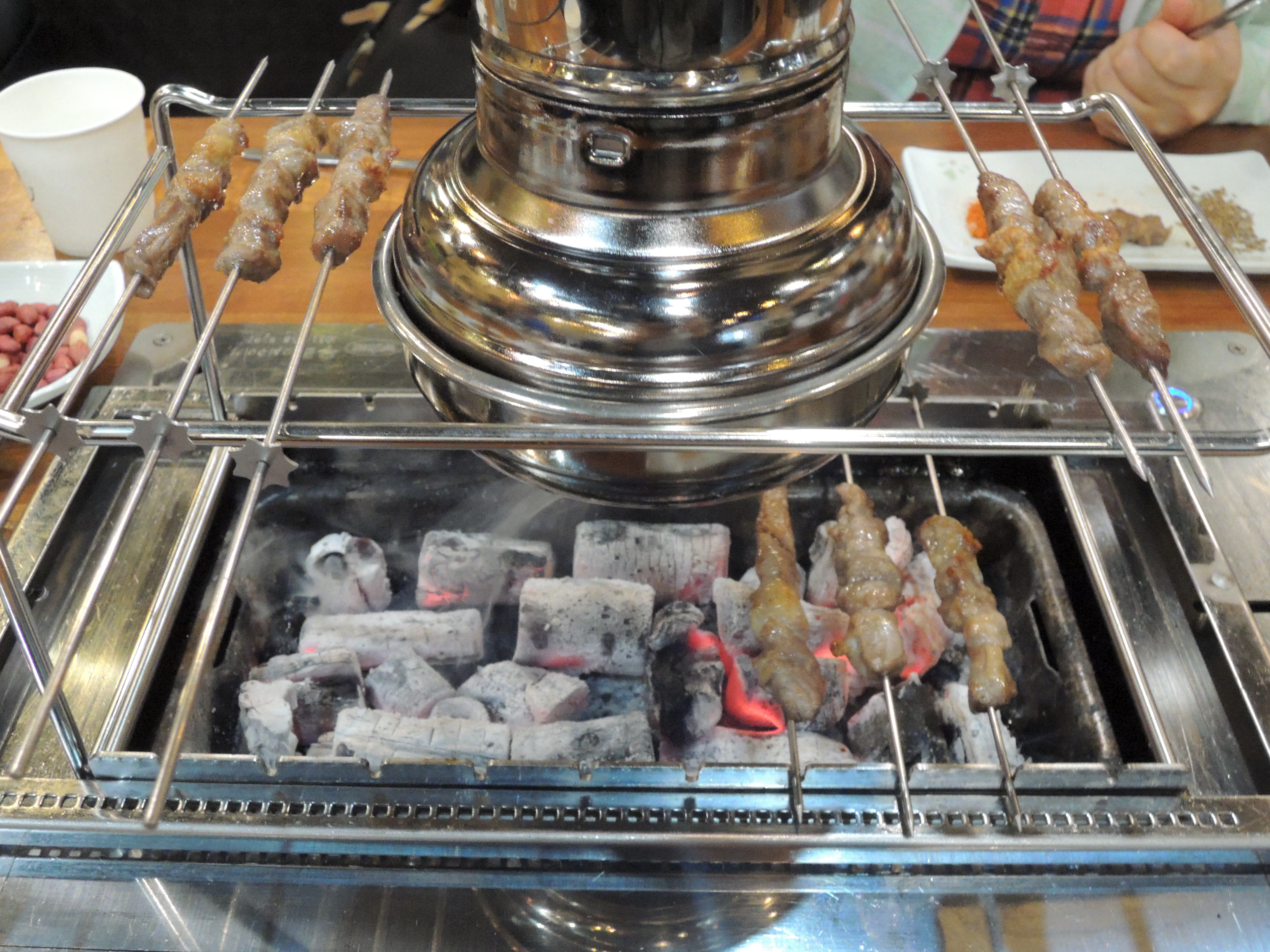 양꼬치가 다 익었으면 양꼬치굽는곳 위 선반에 이렇게 올려두고 먹으면 됩니다. 제법 빨리 익기때문에 신속하게 움직여줘야 해요.