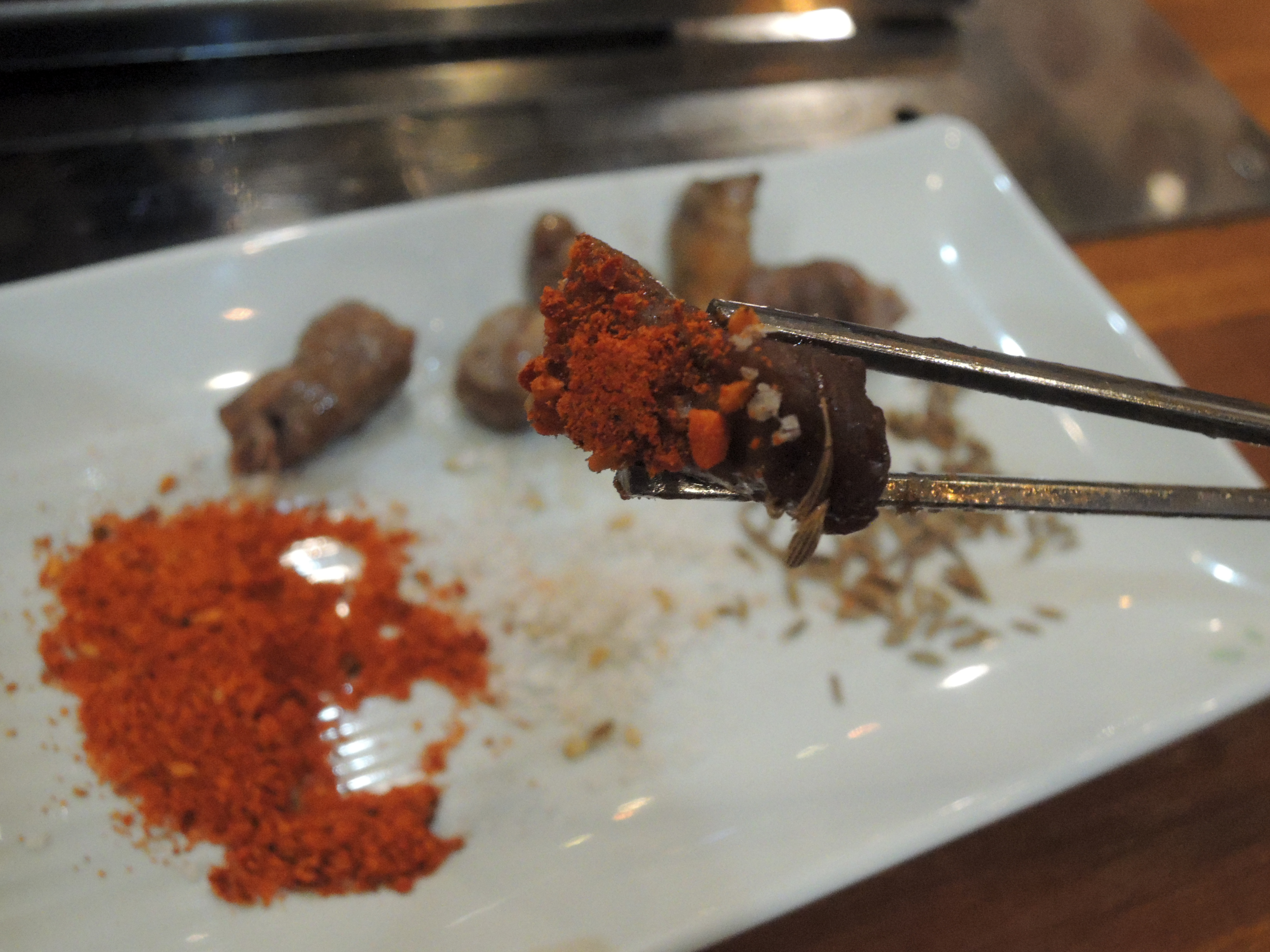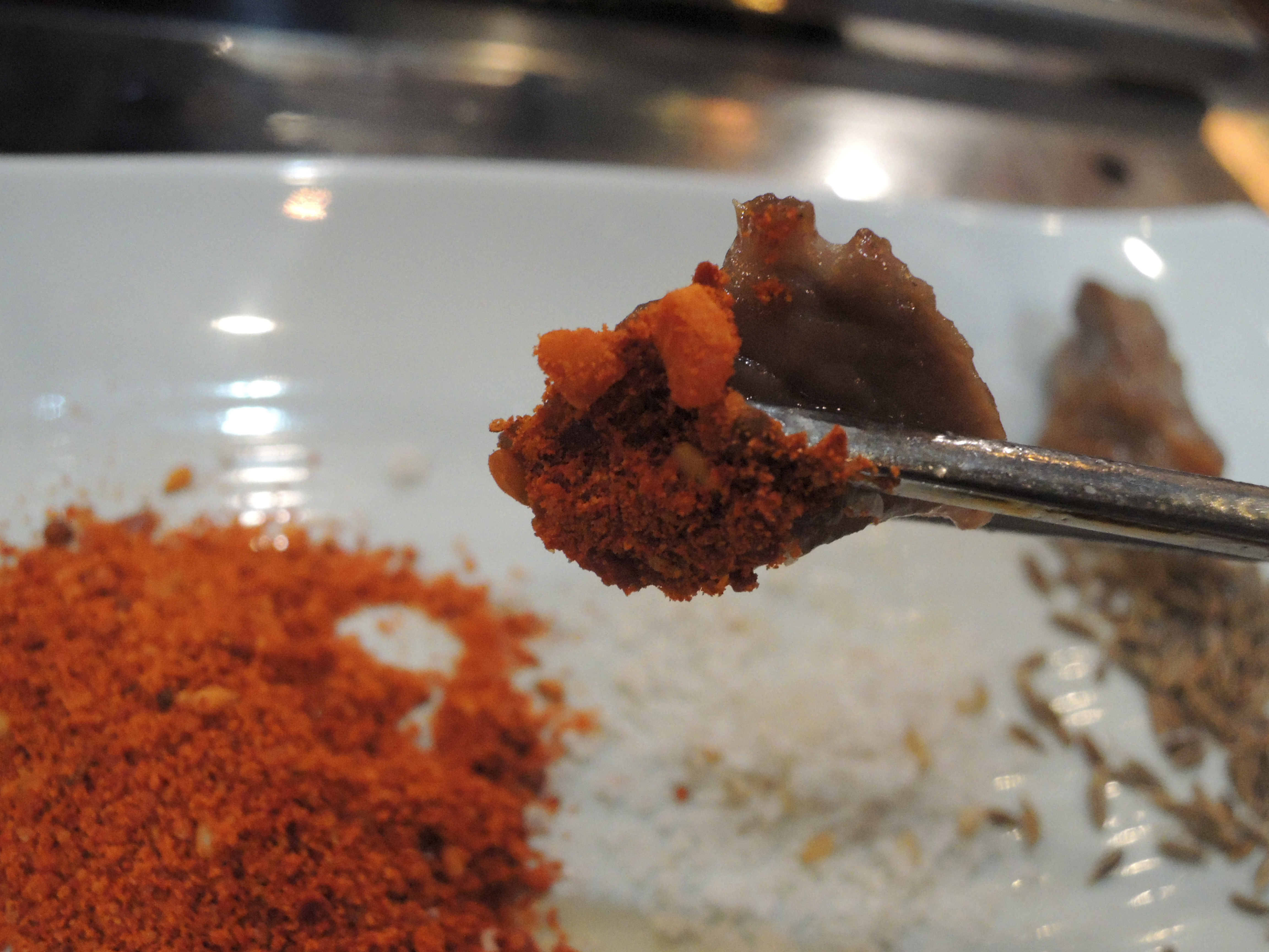 3가지 다른 향신료에 찍어먹어봅니다. 맛이 일품입니다. ㅎㅎ
