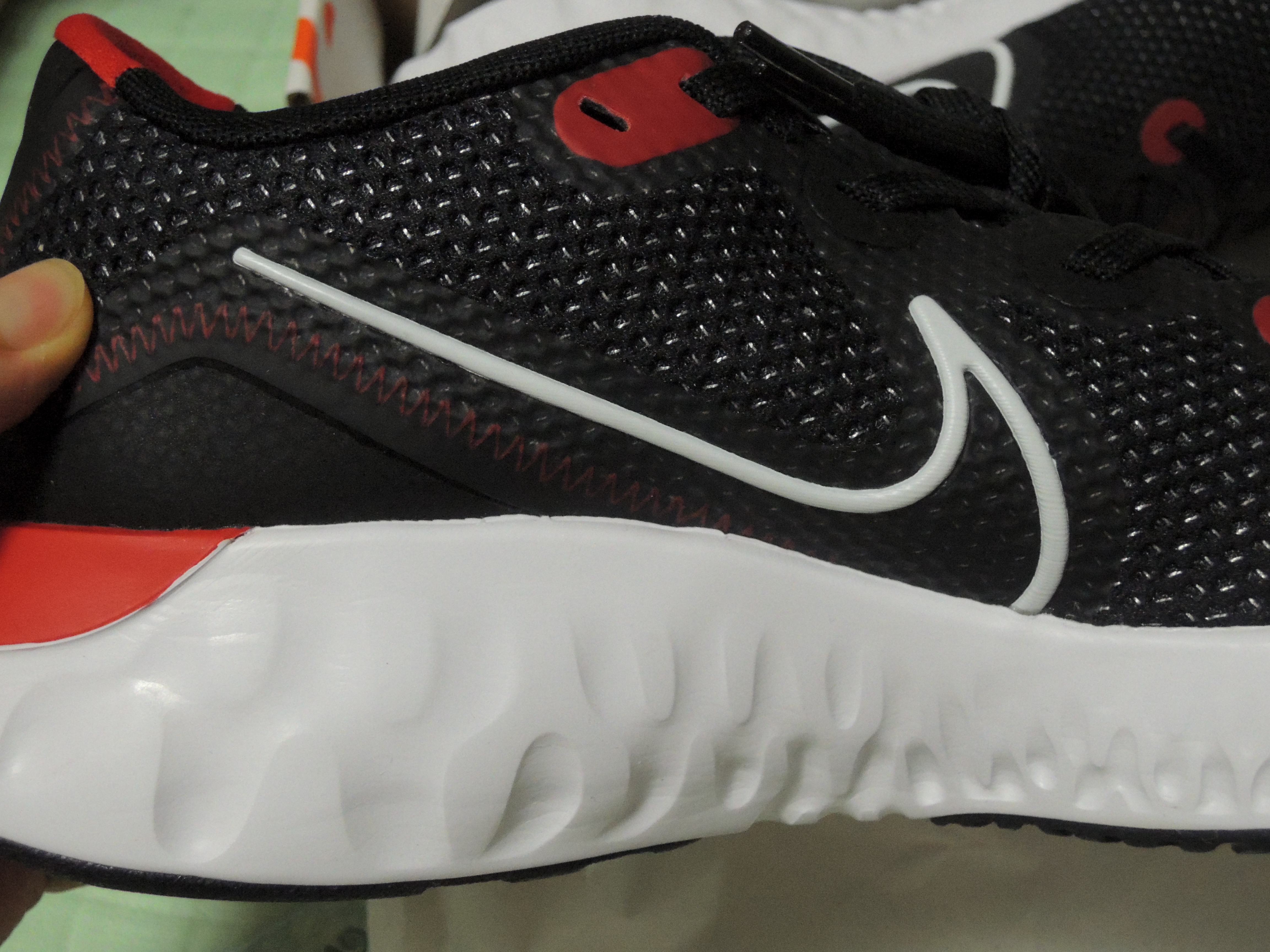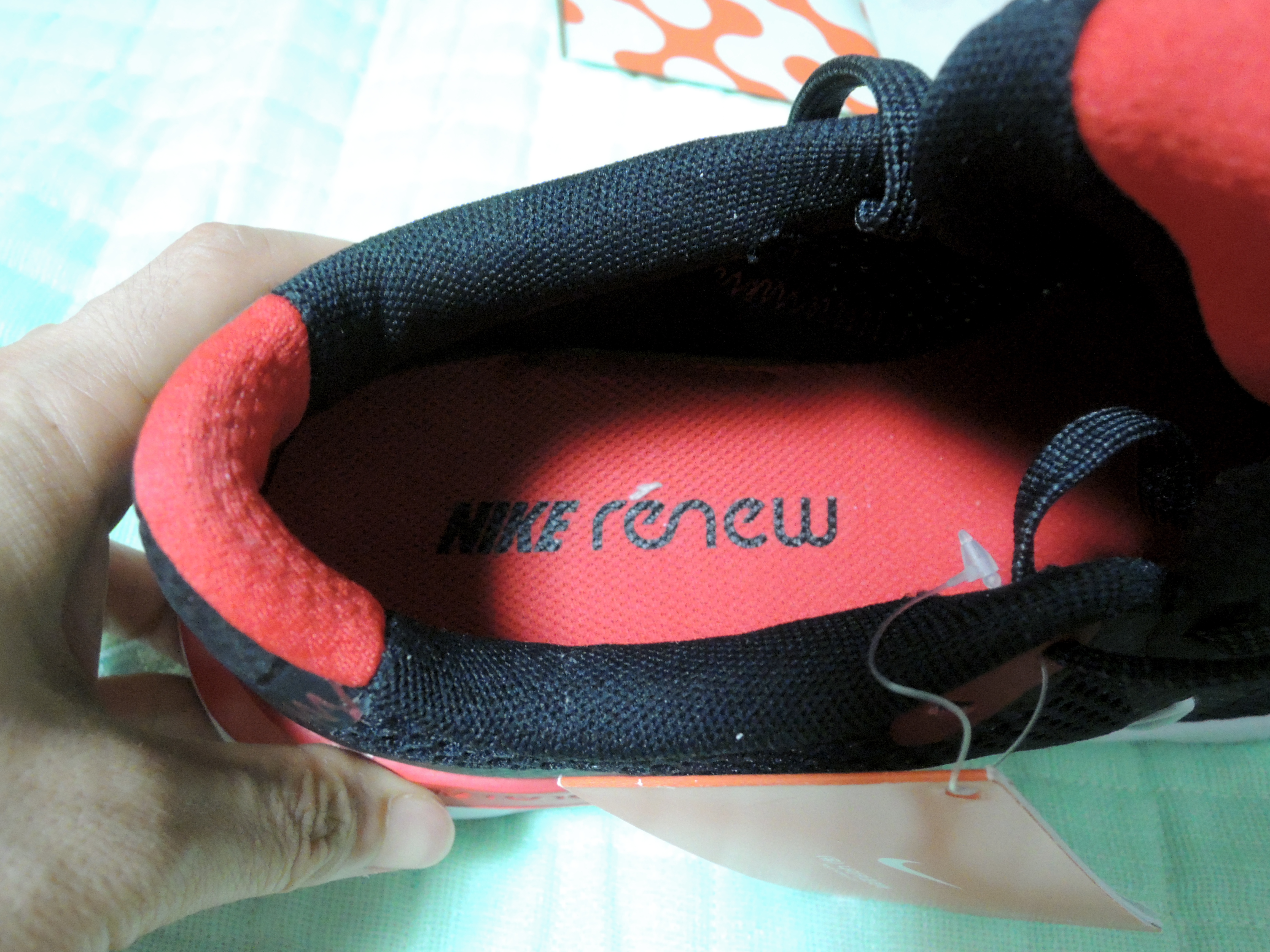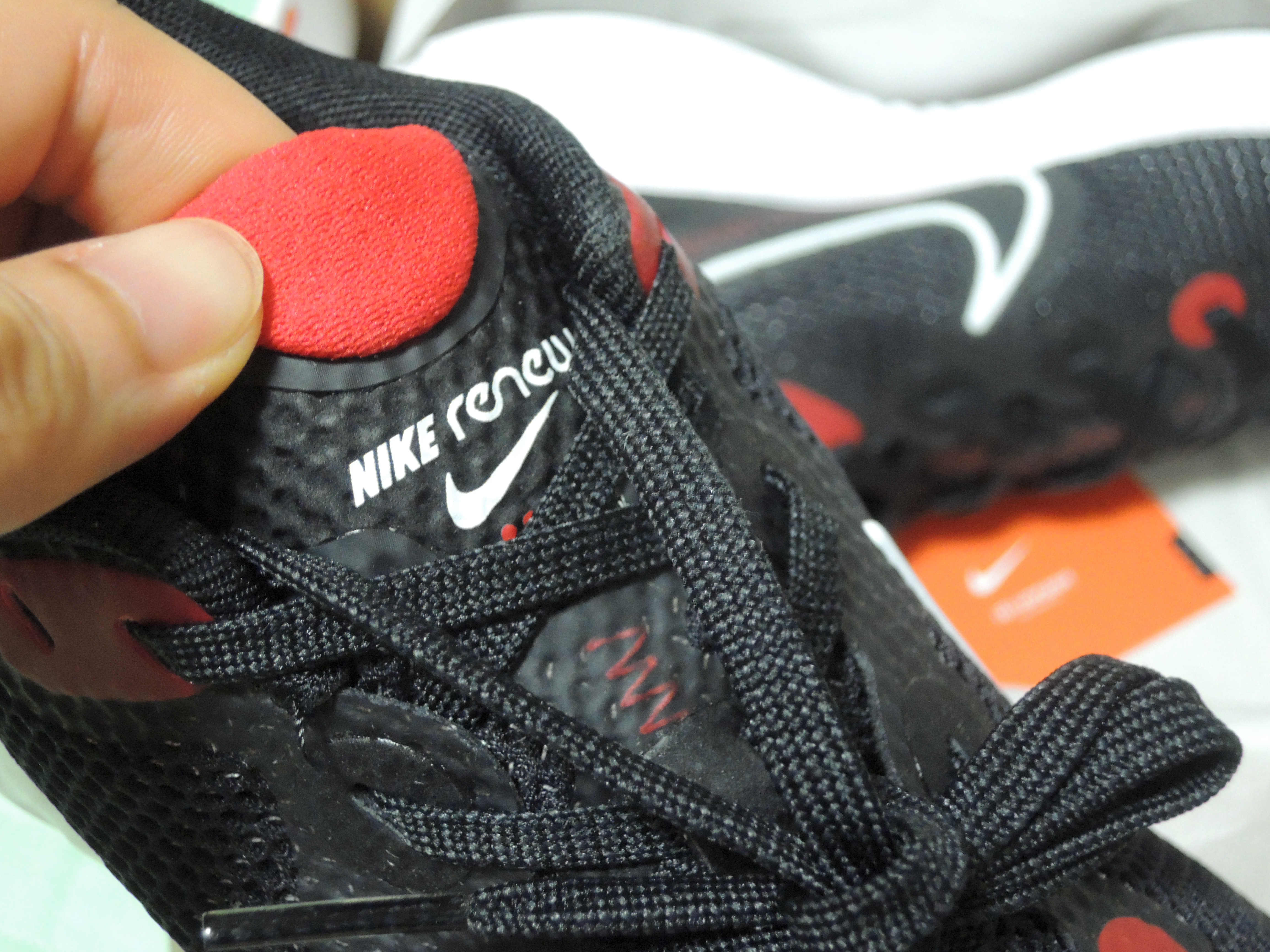 신발 혀 부분입니다. 나이키 리뉴라고 적혀있습니다.