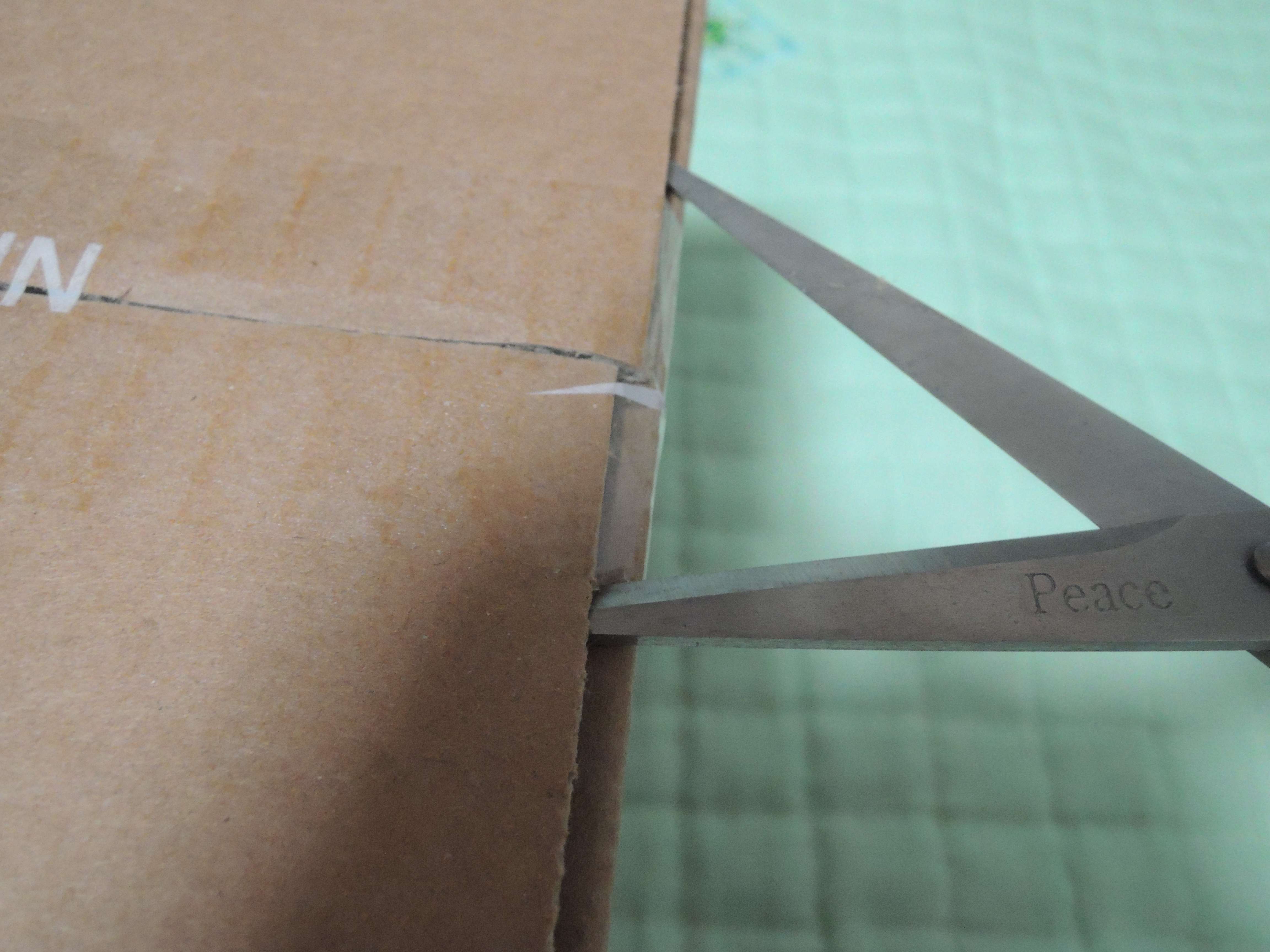 박스 여는부분에 테이핑을 가위로 잘라냅니다.