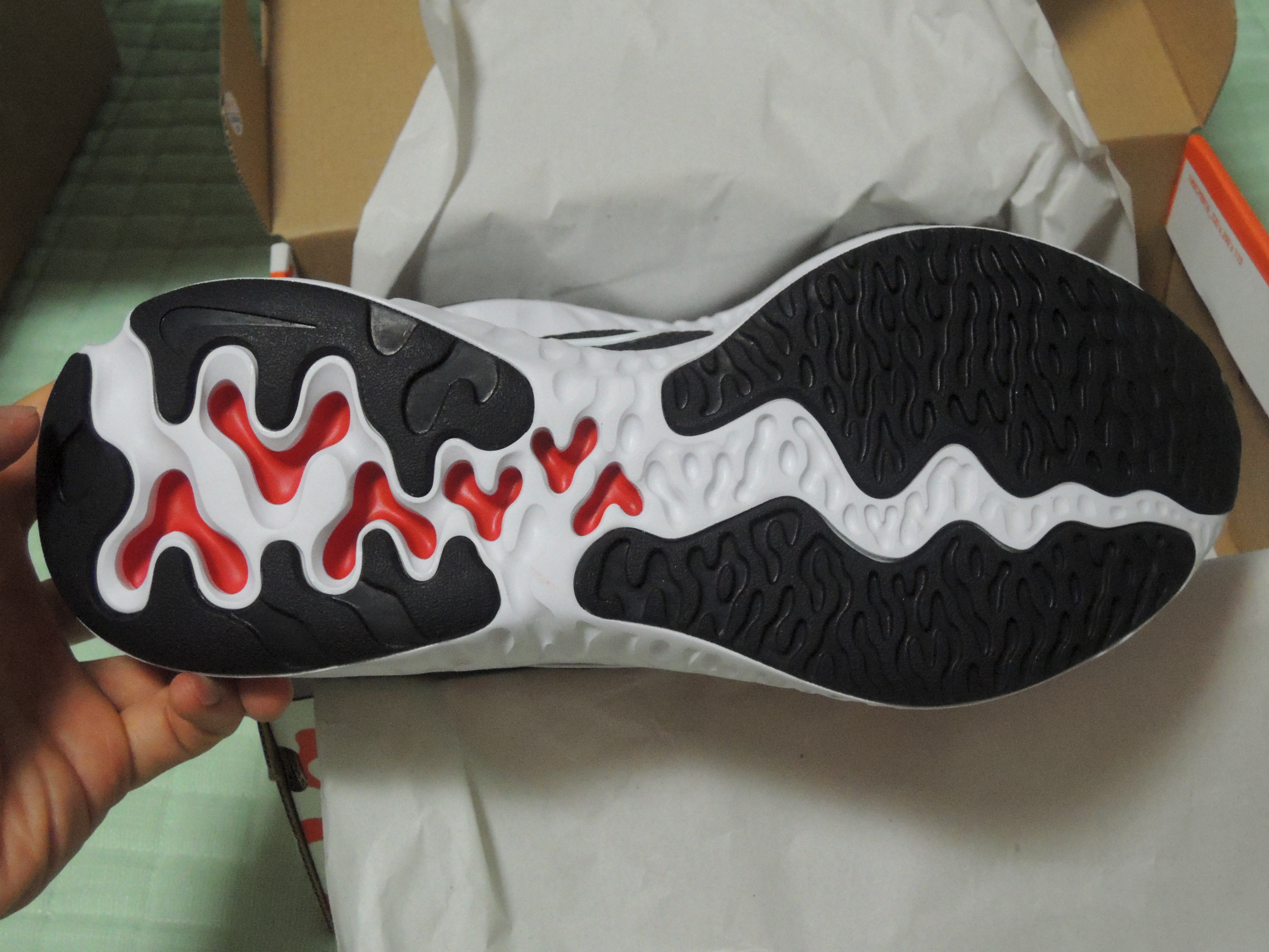 바닥면이 상당히 두껍습니다. 쿠션감이 좋다는 리액트폼... 은 아니고요. 모양만 비슷하게 생겼습니다.