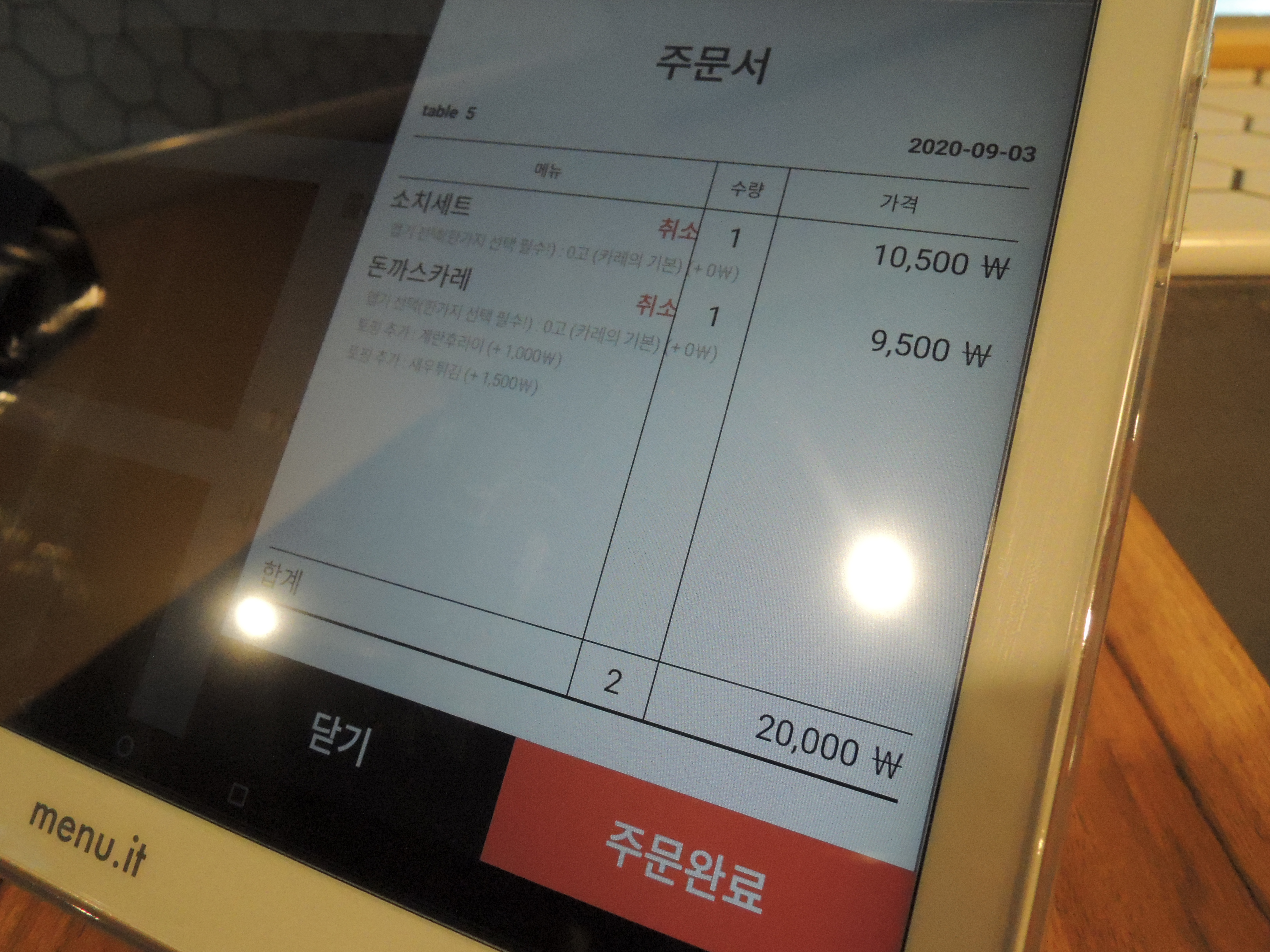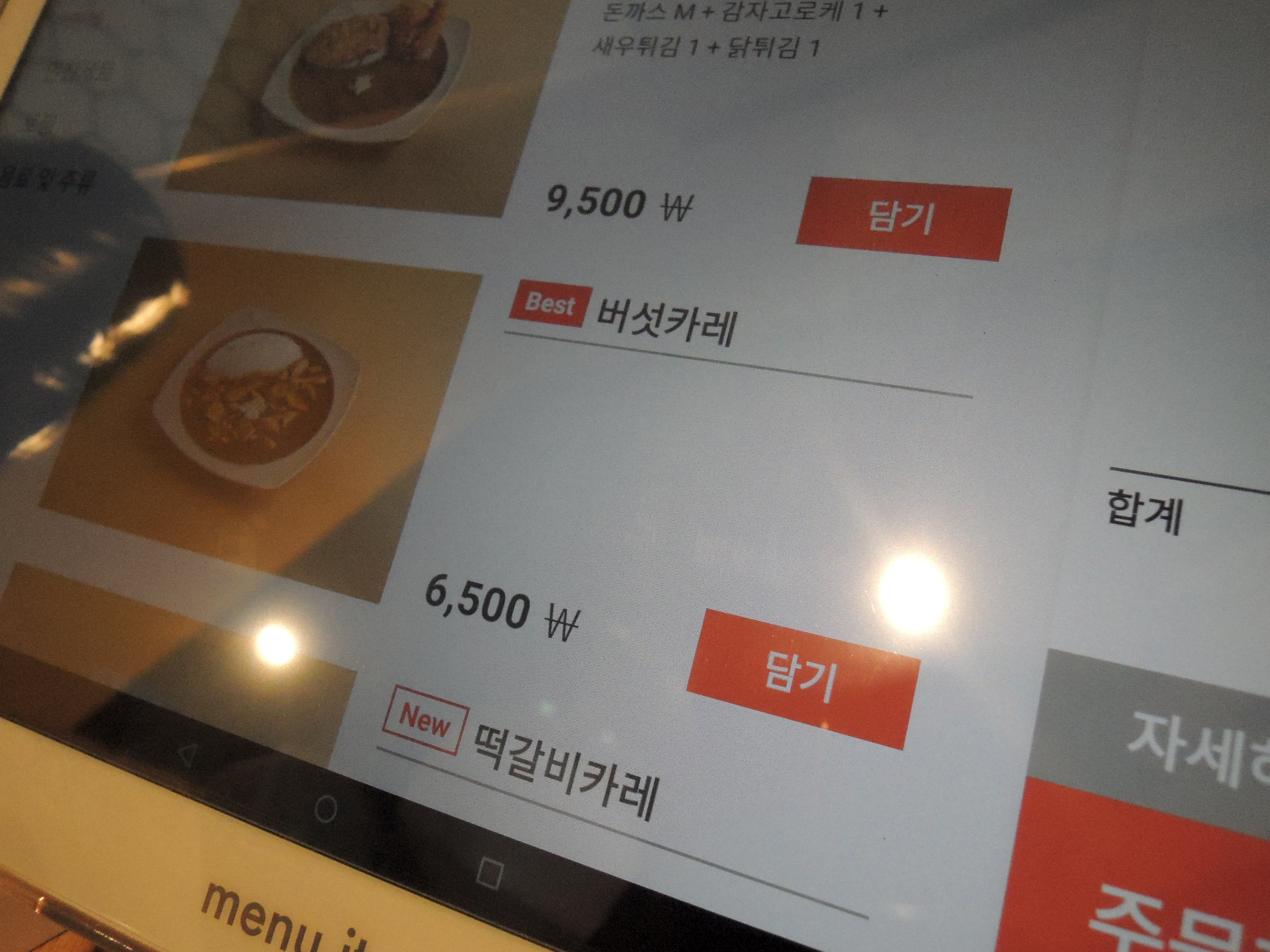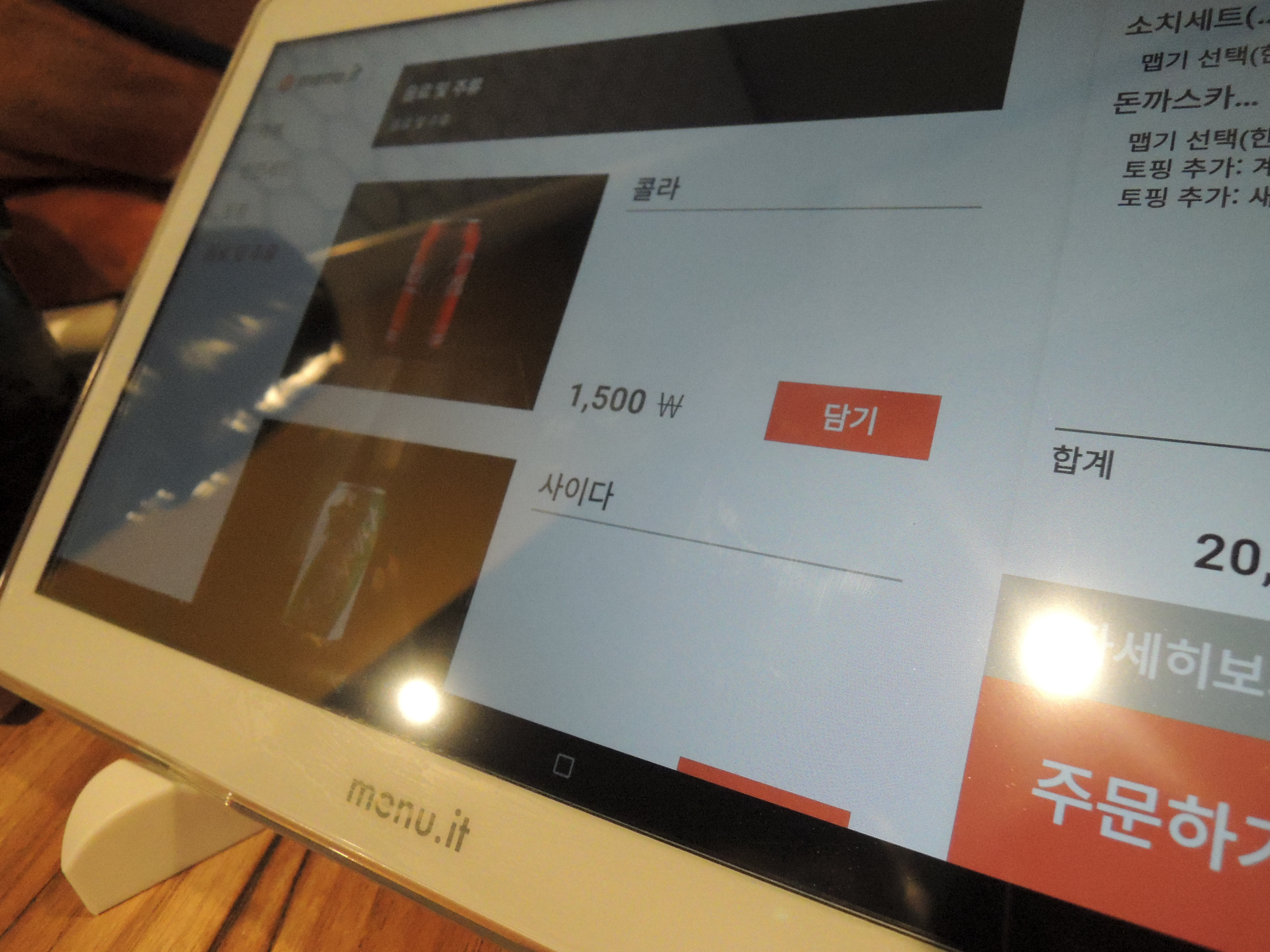 각 테이블마다 태블릿 PC가 있는데 이 태블릿PC로 주문하더라고요. 신기합니다. ㅎㅎ