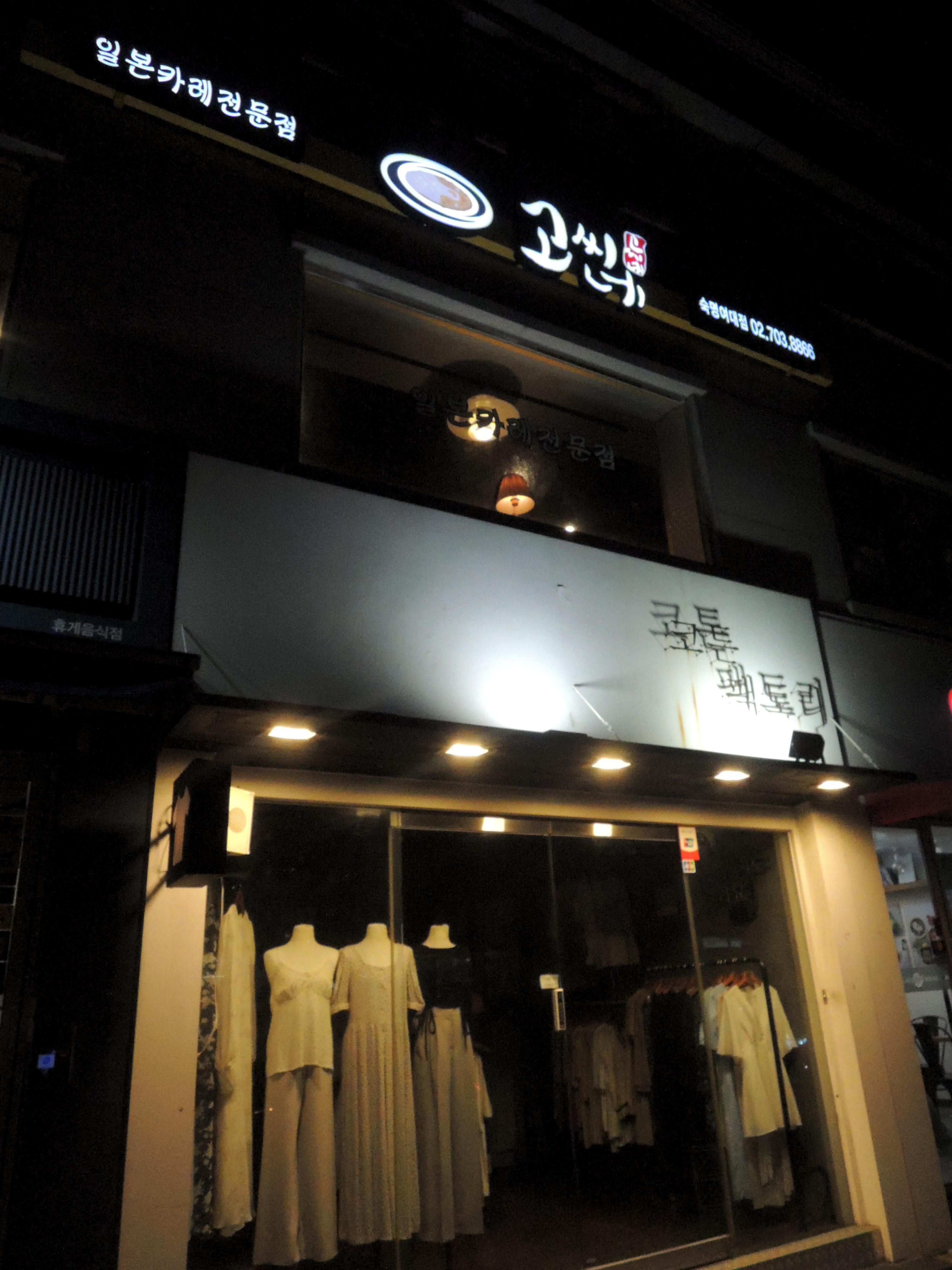 일본카레전문점 고씨네카레 숙명여대점입니다. 아래층은 코튼팩토리 의류매장이 있습니다.