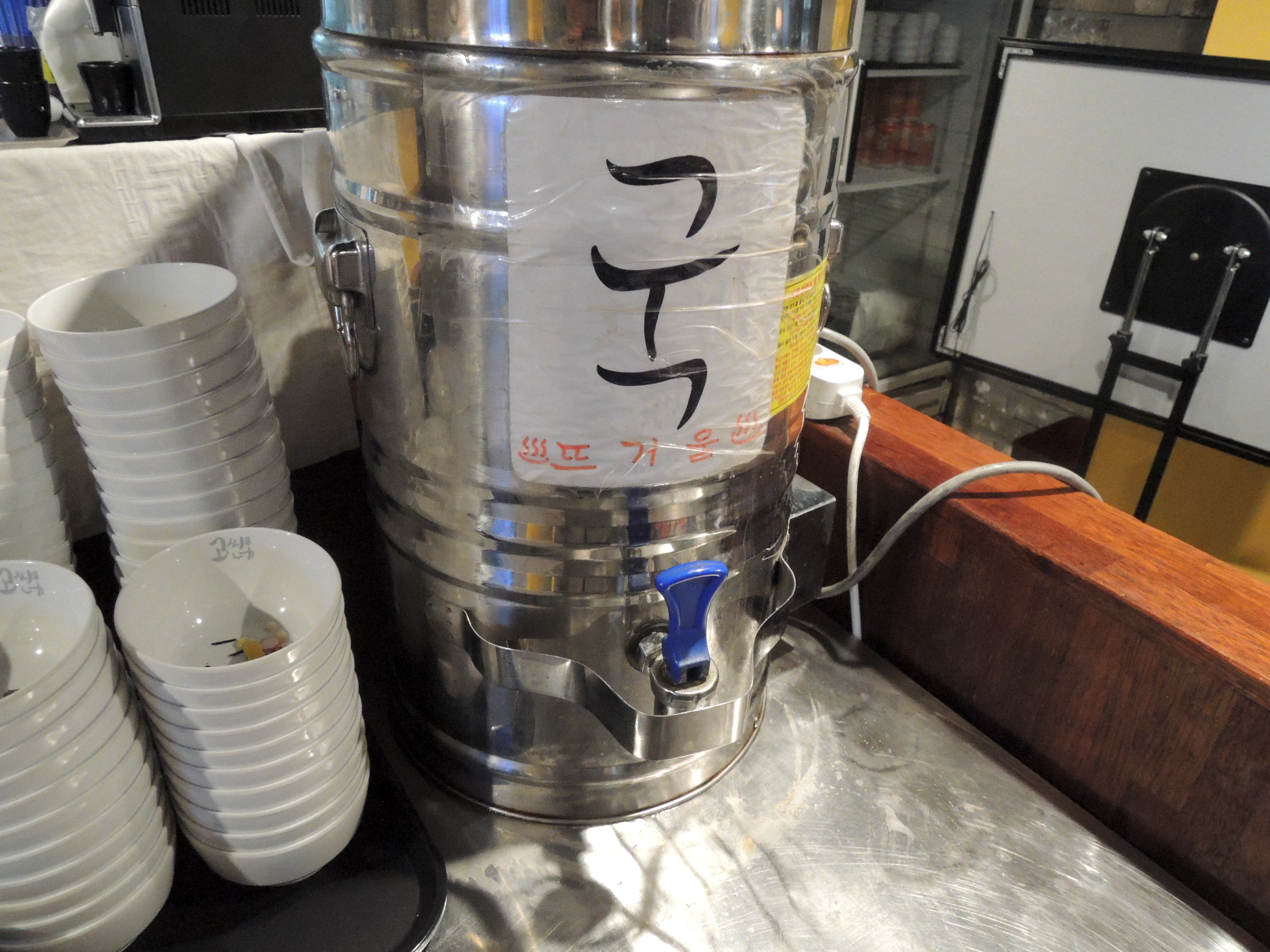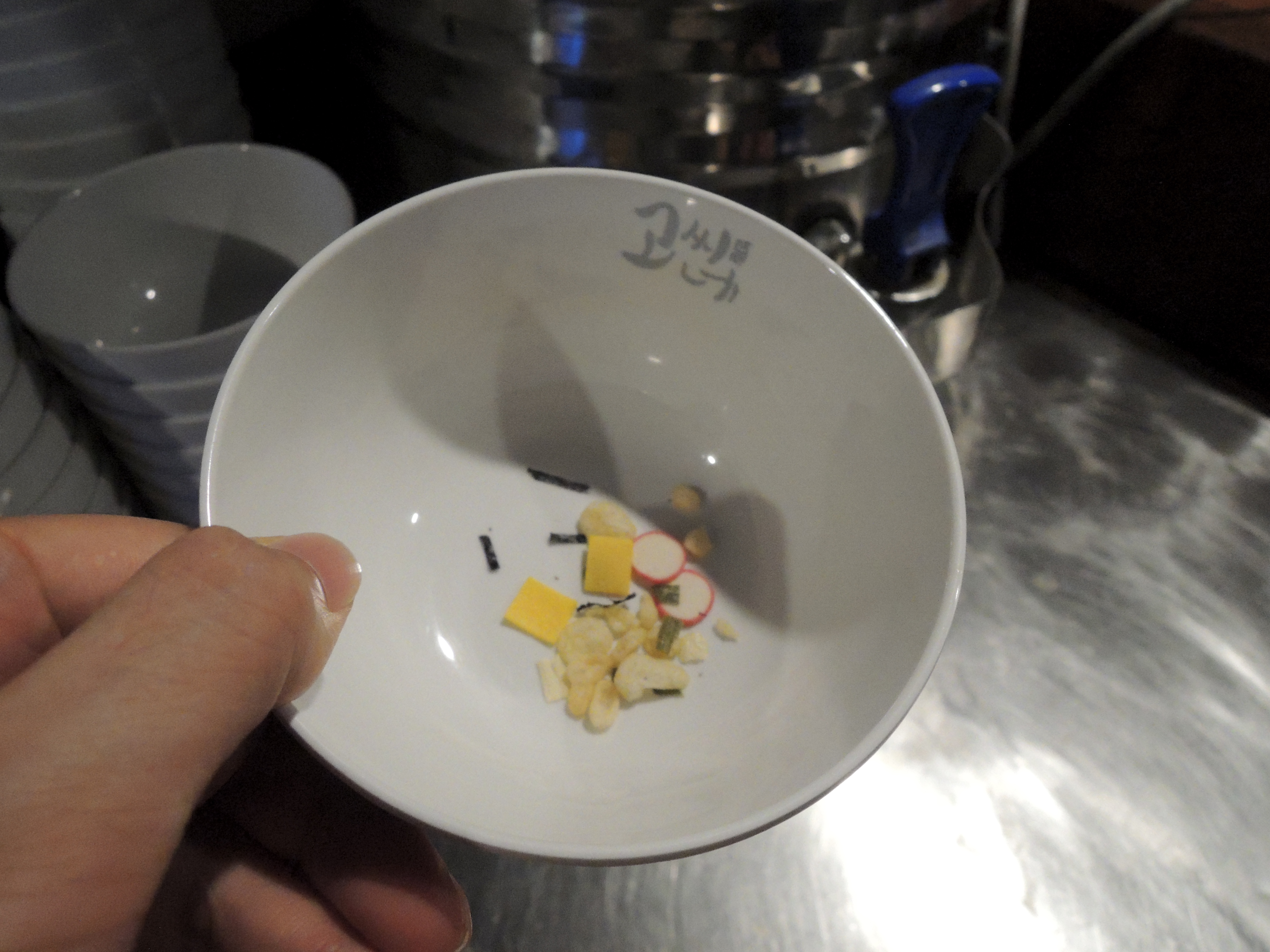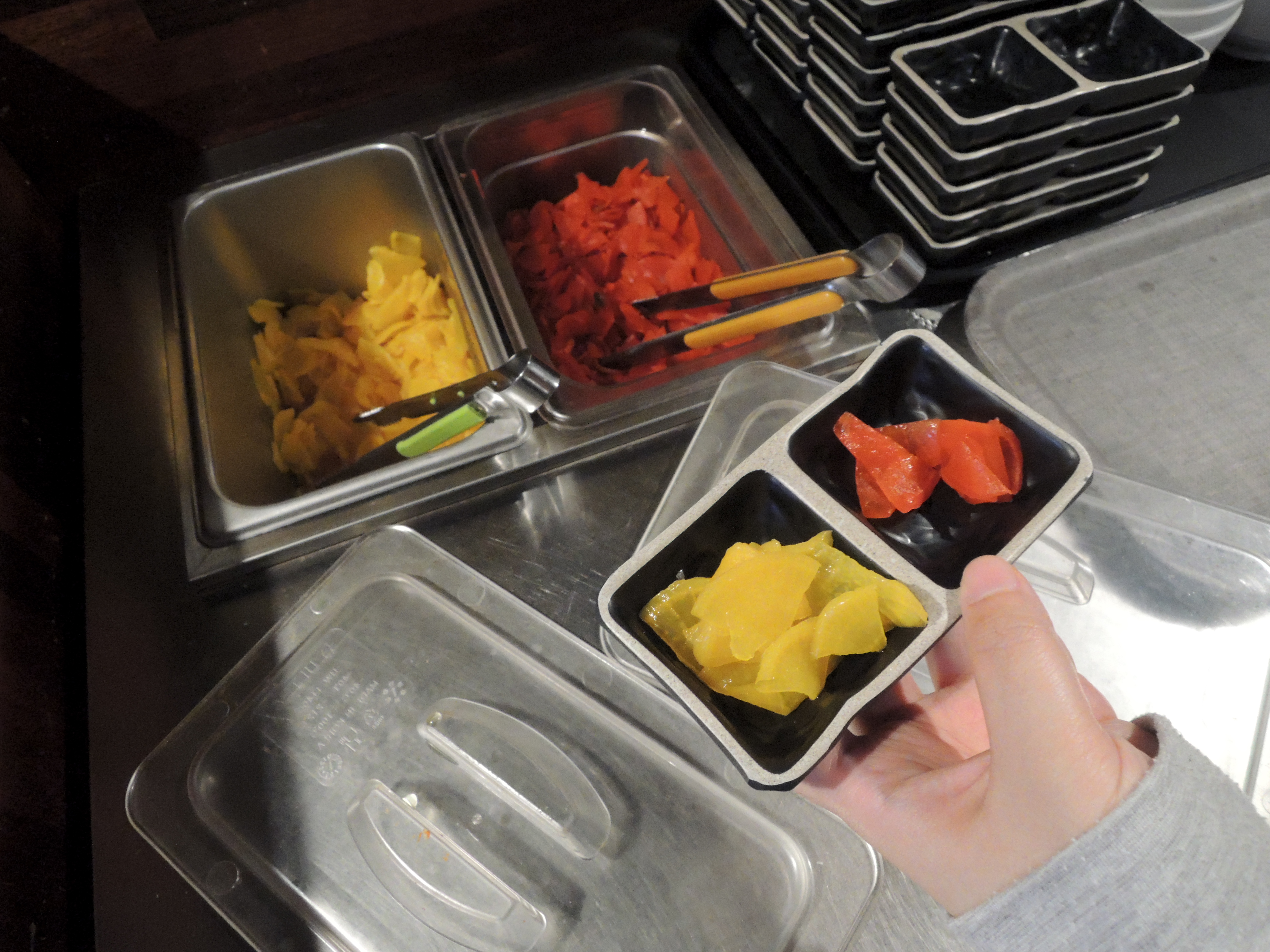 셀프코너에서 단무지와 생강(?) 그리고 국을 가져옵니다.