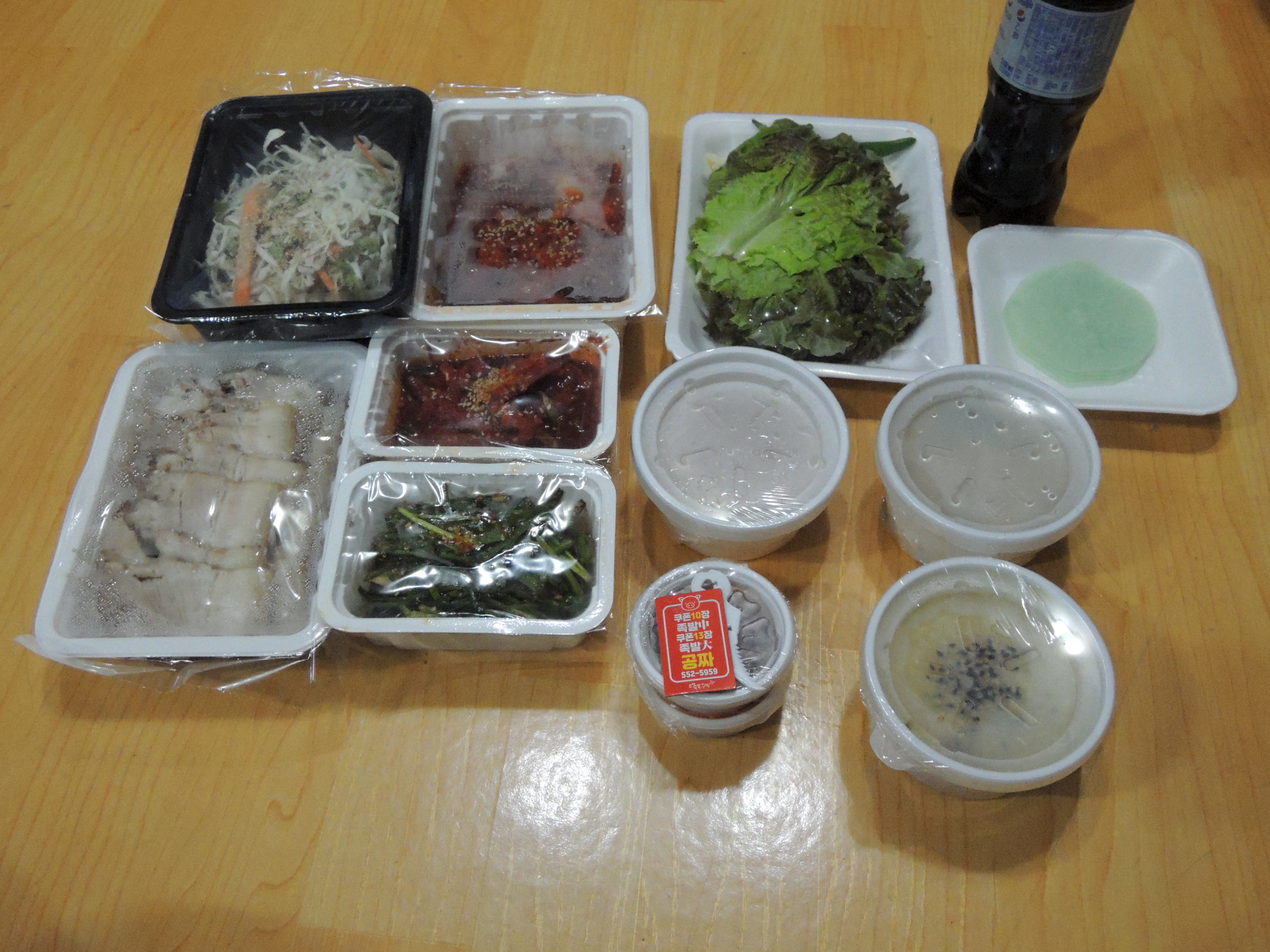집에 와서 포장을 열어 족발을 세팅합니다.