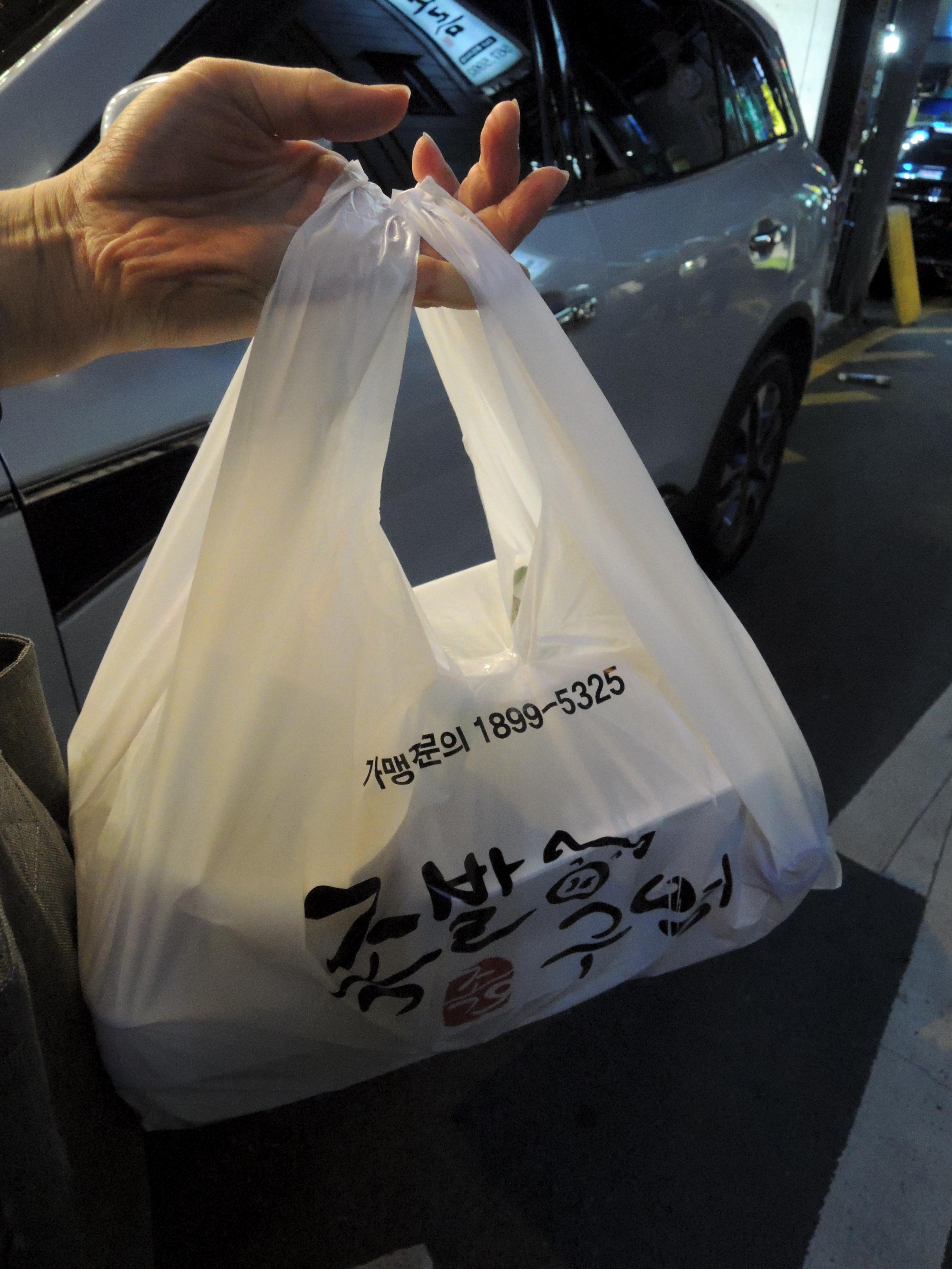 주문한 보쌈이 나왔습니다. 묵직하네요. 보쌈을 들고 집으로 출발~