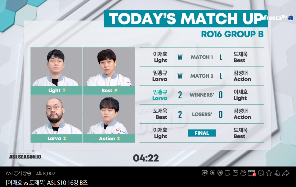| ASL 시즌 10 16강 B조 결과 요약 (0) | 2020.10.08 |