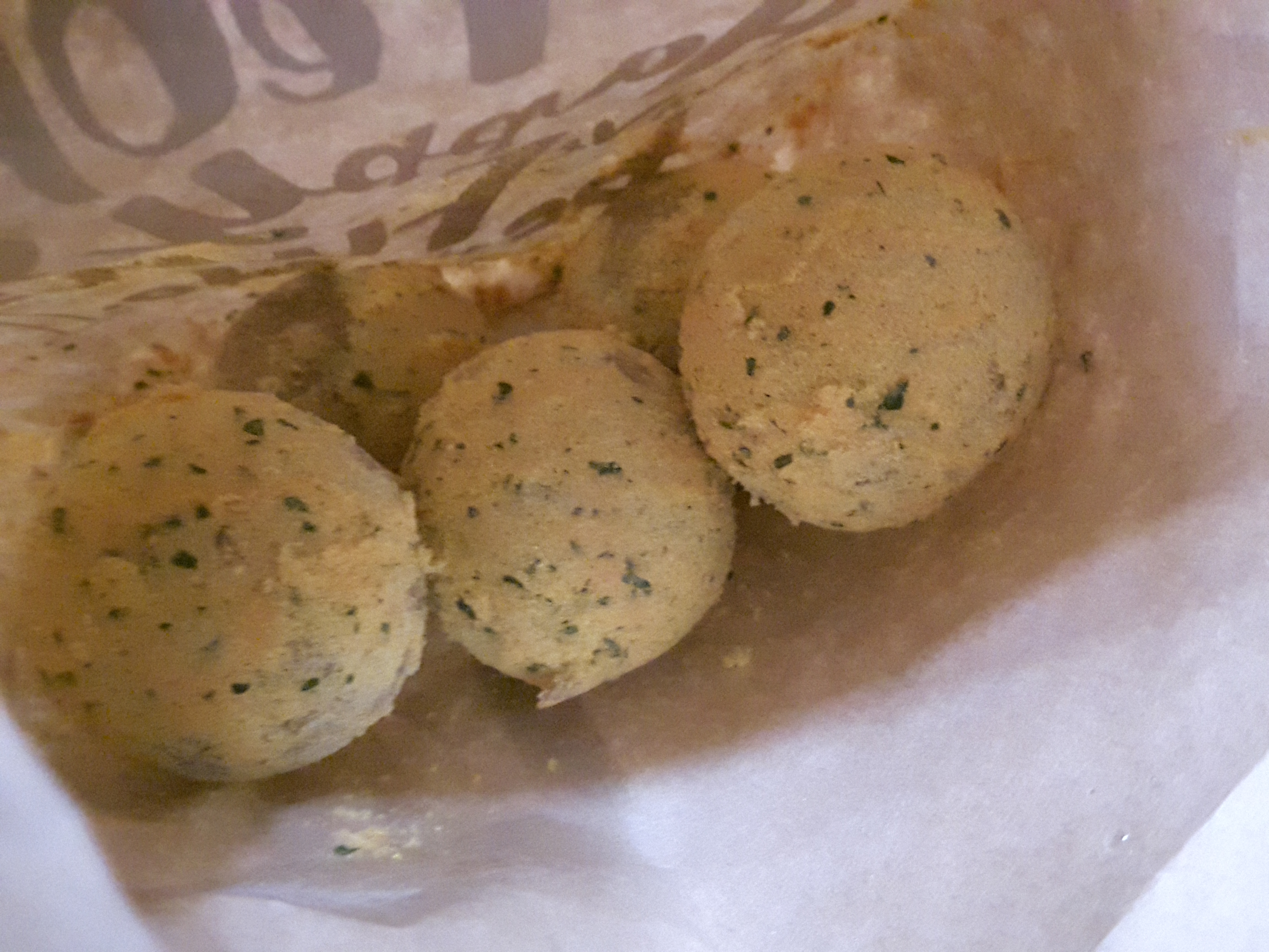 5알 들어있습니다. 제가 주문한게 뿌링클치즈볼이었던가 봐요. 뿌링클소스가 뿌려져있네요.