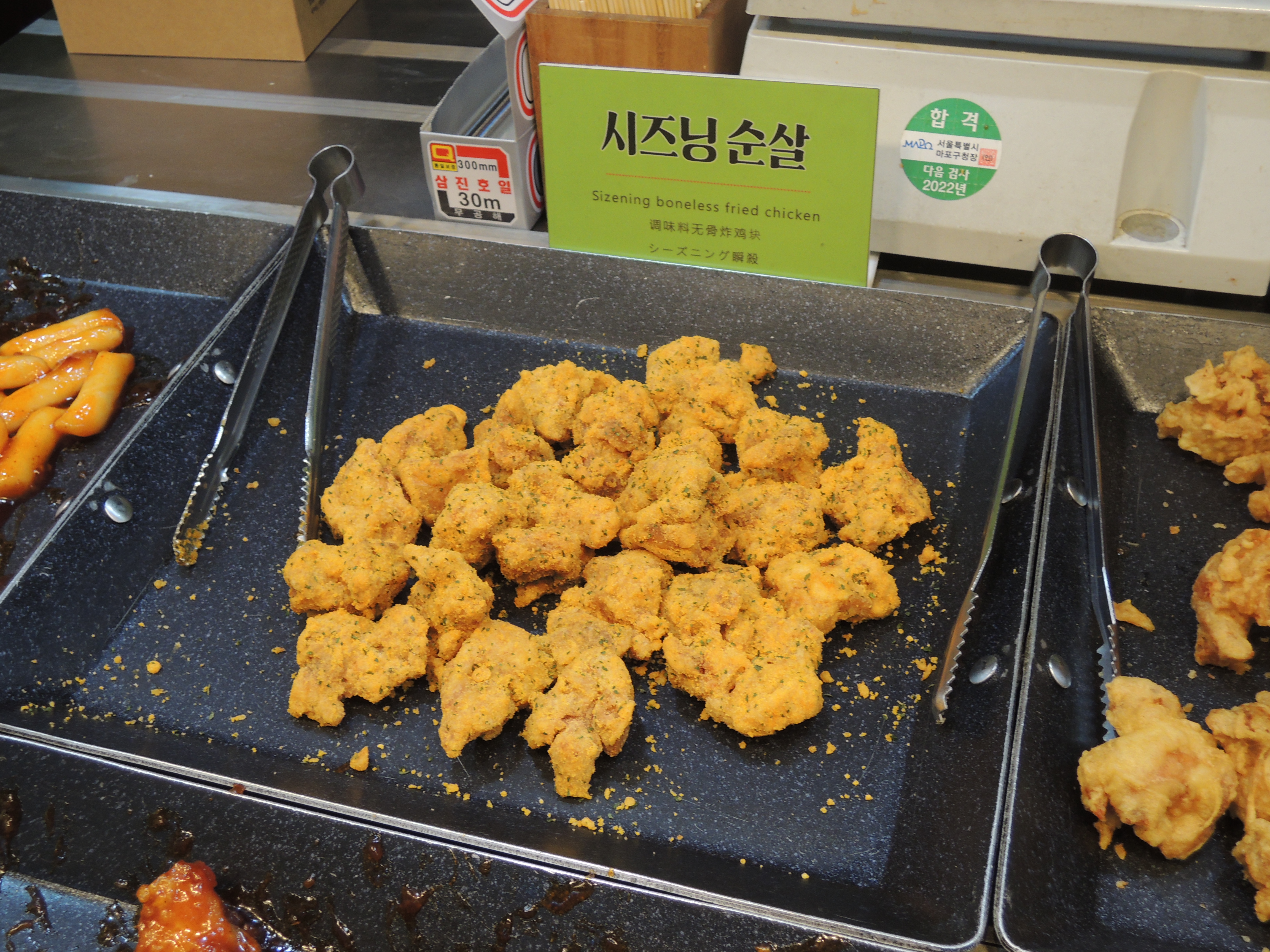 닭강정, 꽈배기 등등 다양한 먹거리가 많은 이곳에서 닭강정을 사먹어보았어요.