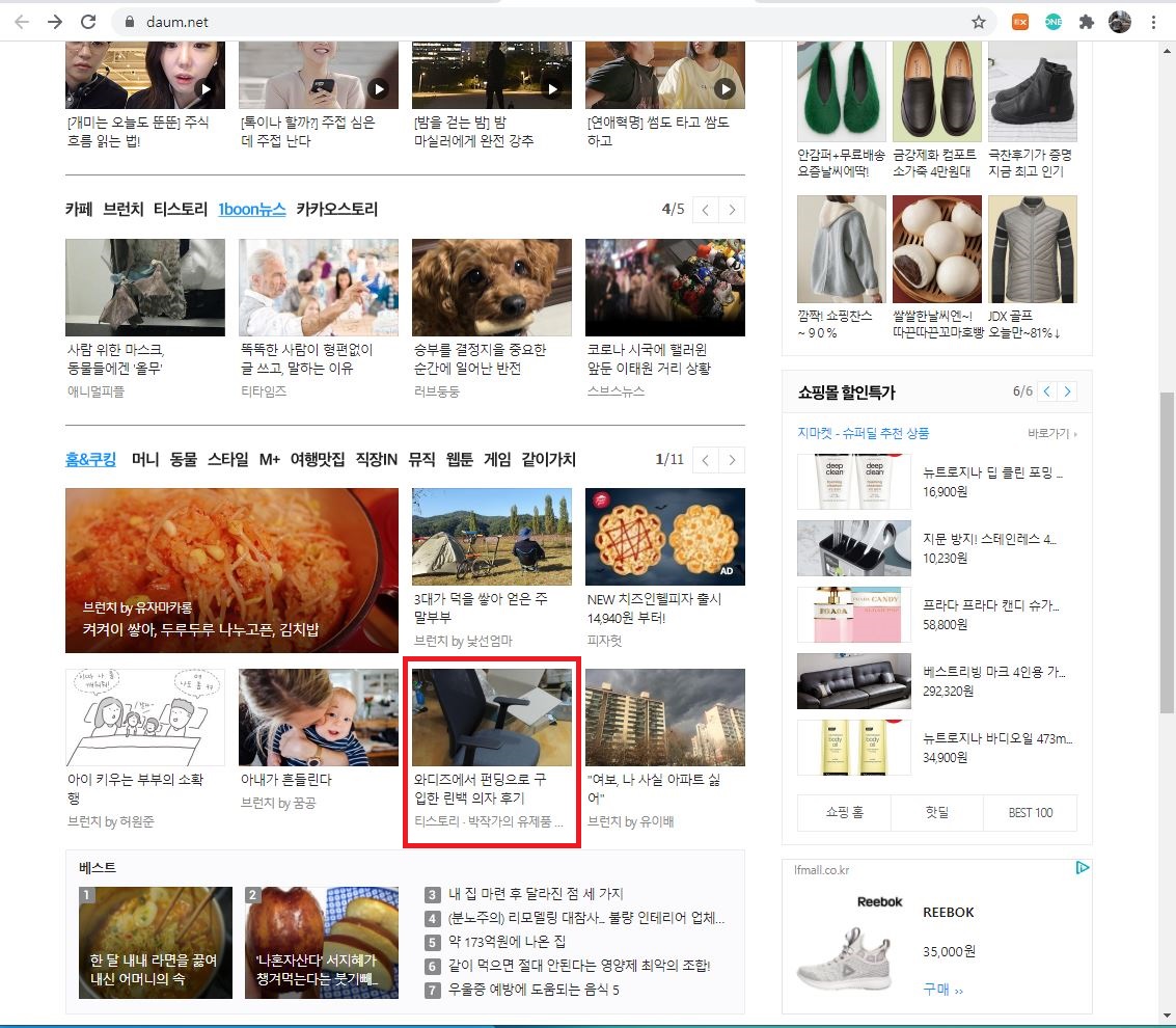 음식점리뷰가 메인에 올라가서 이후 음식점 리뷰를 열심히 적었는데, 이번에는 와디즈로 펀딩한 의자 언박싱 리뷰글이 올라갔습니다.
