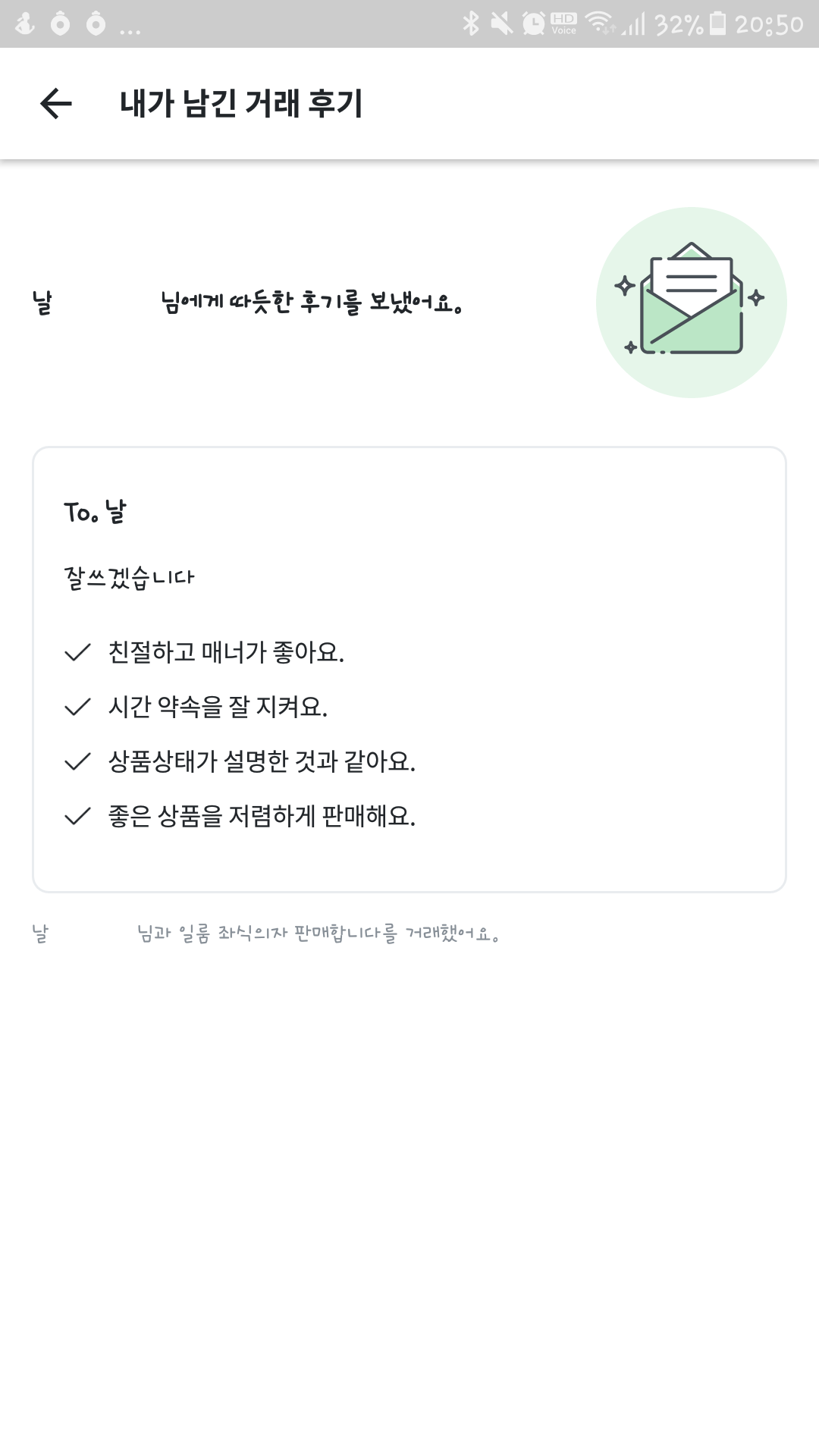 거래가 끝나고 나면 당근마켓에 후기도 올릴 수 있어요.
