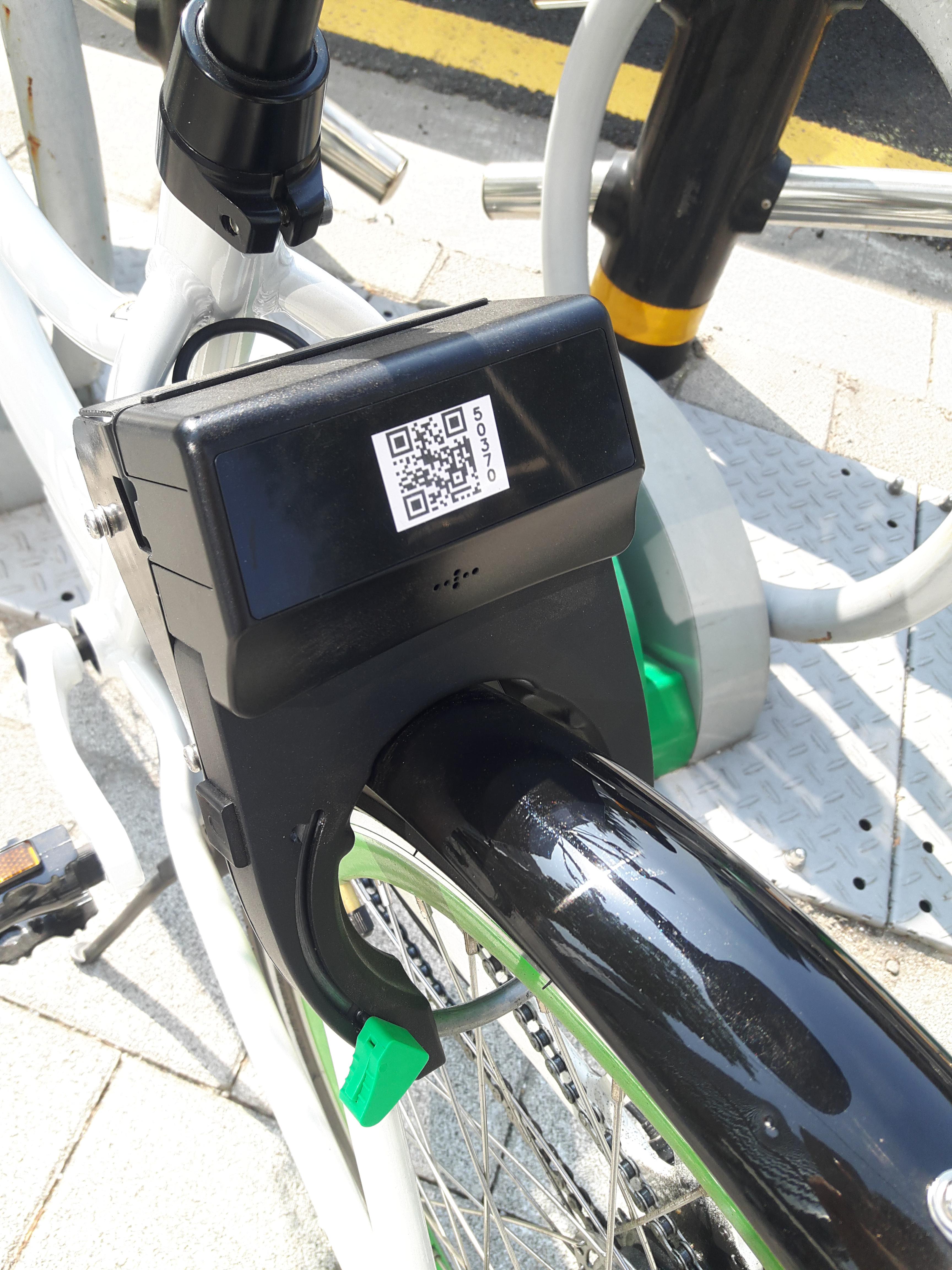 짠, 앞바퀴부분입니다. 잘 보시면 바구니 뒷쪽에 큐알코드가 하나 더 있습니다. 저 큐알코드로도 인식이 가능한가봐요.