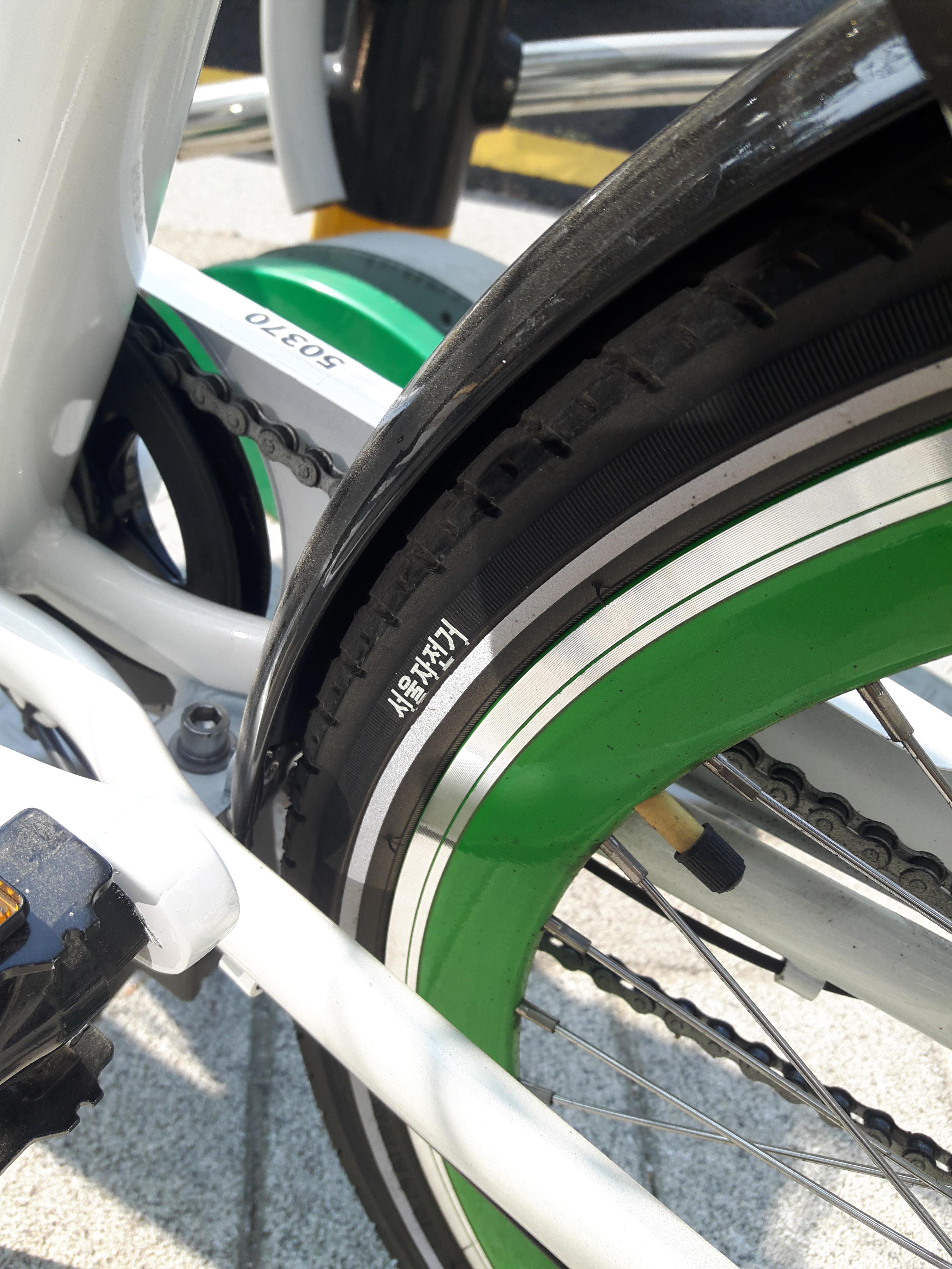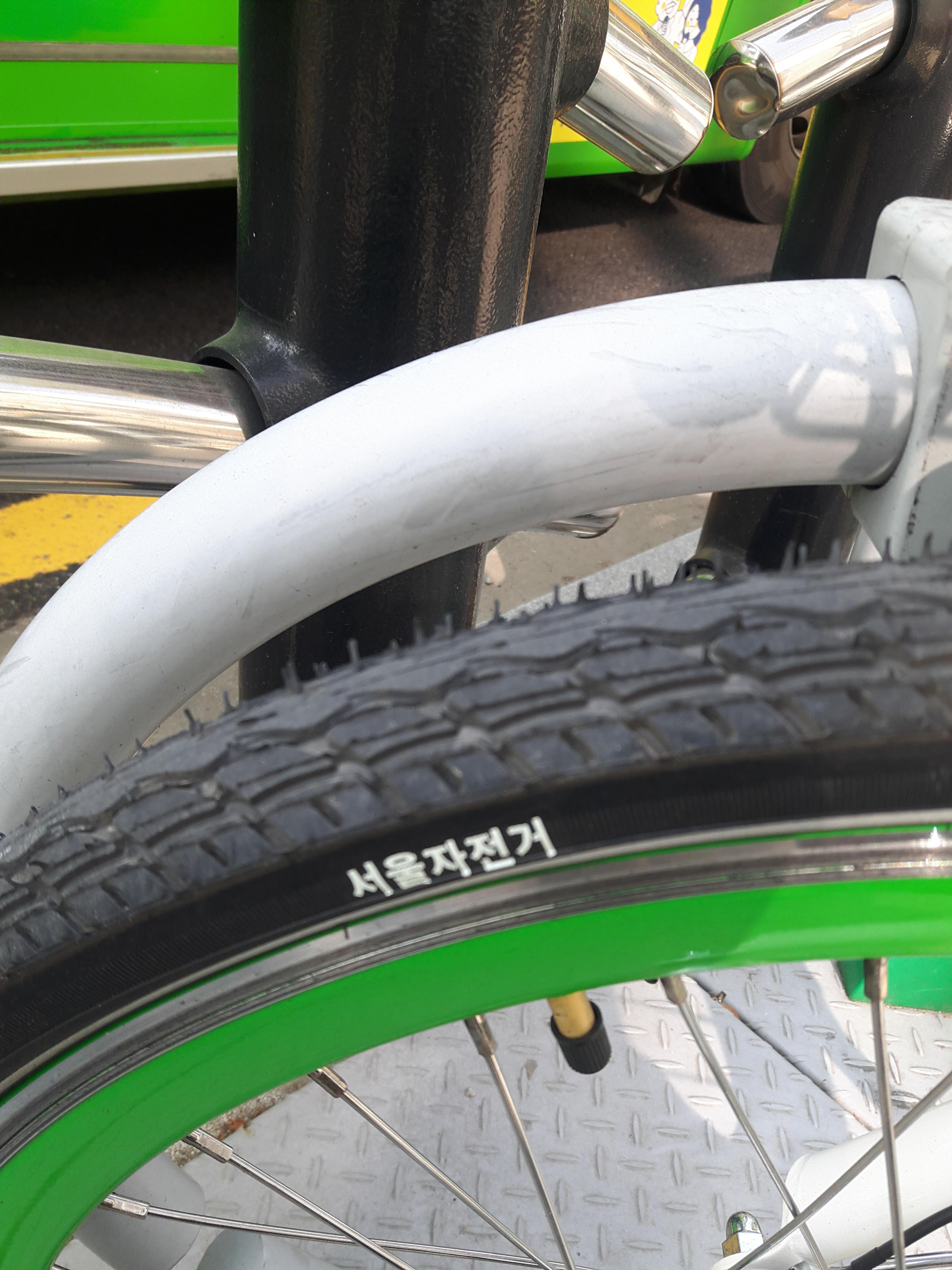 새자전거라 반짝반짝합니다. ㅎㅎ 휠에 서울자전거라고 쓰여 있습니다.