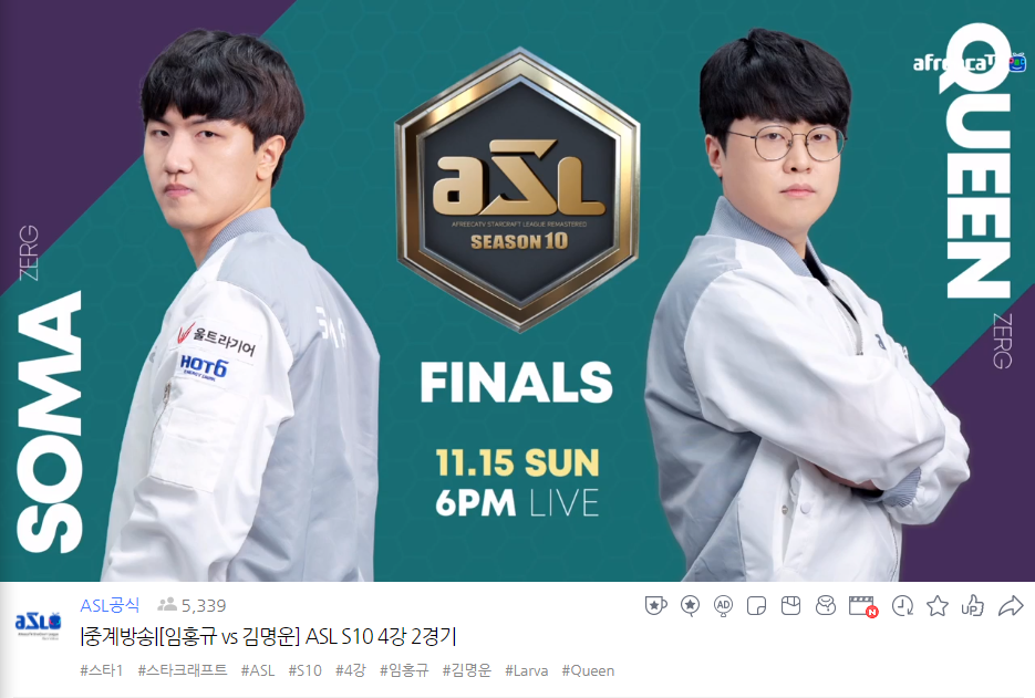 11월 15일 저그대저그 결승전이 벌어지네요.