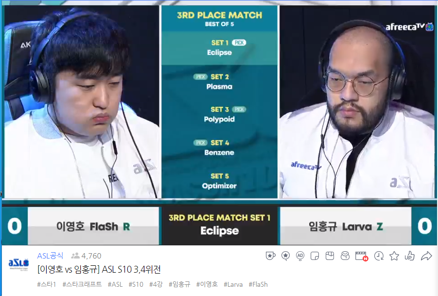 ASL 시즌 10 3,4위전 랜덤 이영호대 저그 임홍규의 경기를 오늘 했습니다.