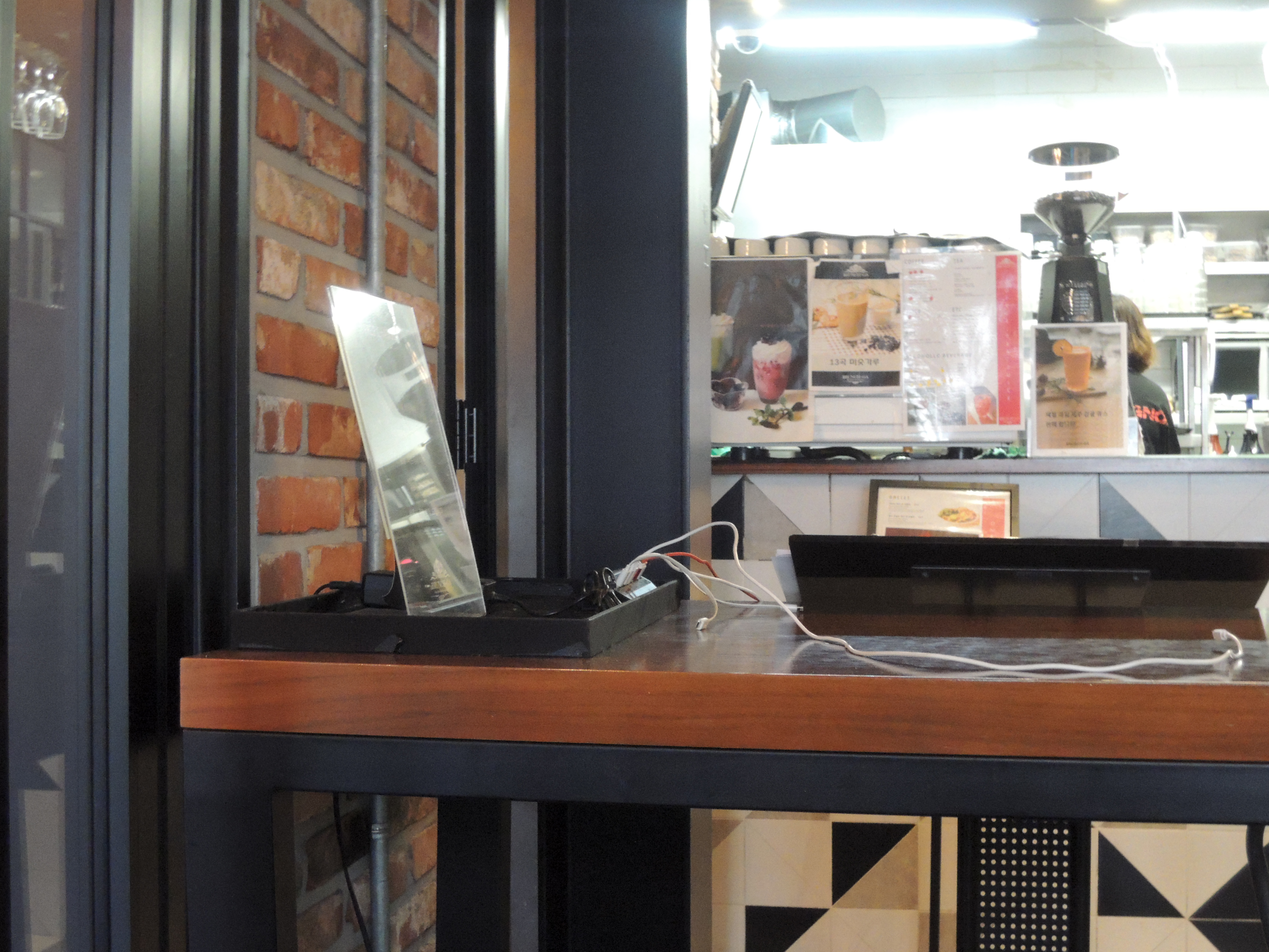제가 주문한 아란치니 크림파스타랑, 크로플 브런치, 생귤쥬스, 아메리카노에요. 주문방식은 런치의 경우 매장 카운터에서 주문을 하면 카페처럼 진동벨을 주시는데 진동벨이 울리면 카운터에 가서 음식을 받는 형식이에요. 식사가 끝나면 다 먹은 그릇은 테이블 옆 퇴식구에 가져다 놓음 됩니다. 인건비도 줄이는 대신, 양질의 음식을 먹을 수 있는, 요즘 트랜드에 맞춘 방식인거 같아요.