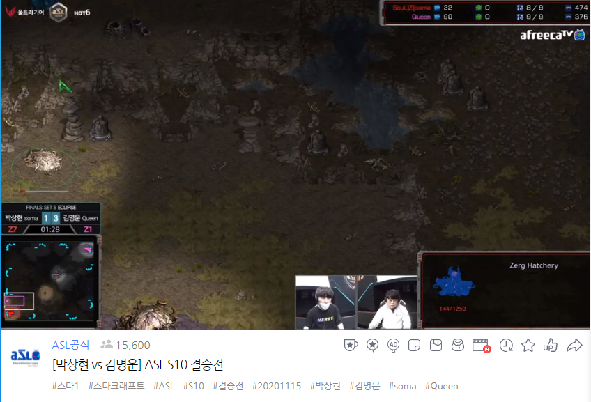 | ASL S10 결승 박상현 vs 김명운 3세트 - 박상현 승 (2) | 2020.11.15 |