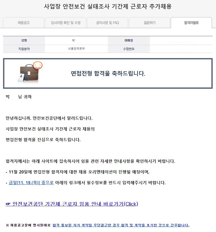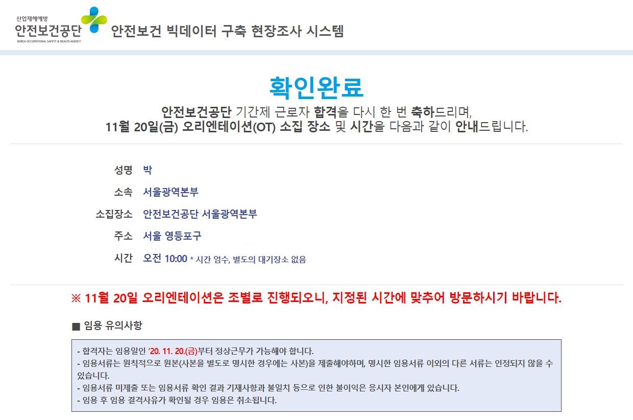 안전보건공단 빅데이터 구축 현장조사 추가모집 합격 수기 입니다.