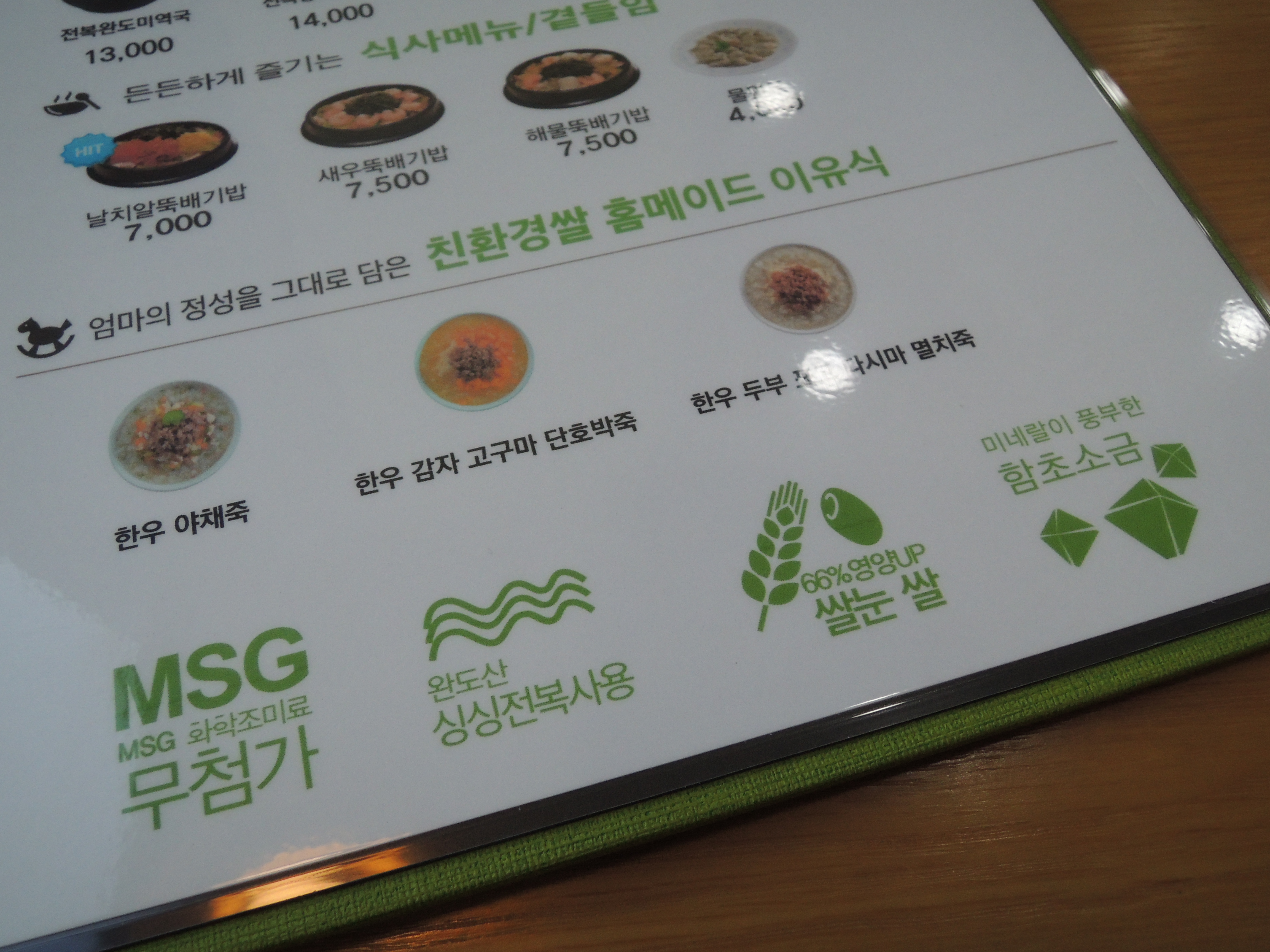 죽 메뉴 외에도 미역국메뉴, 뚝배기 메뉴를 판매하고 있어요.