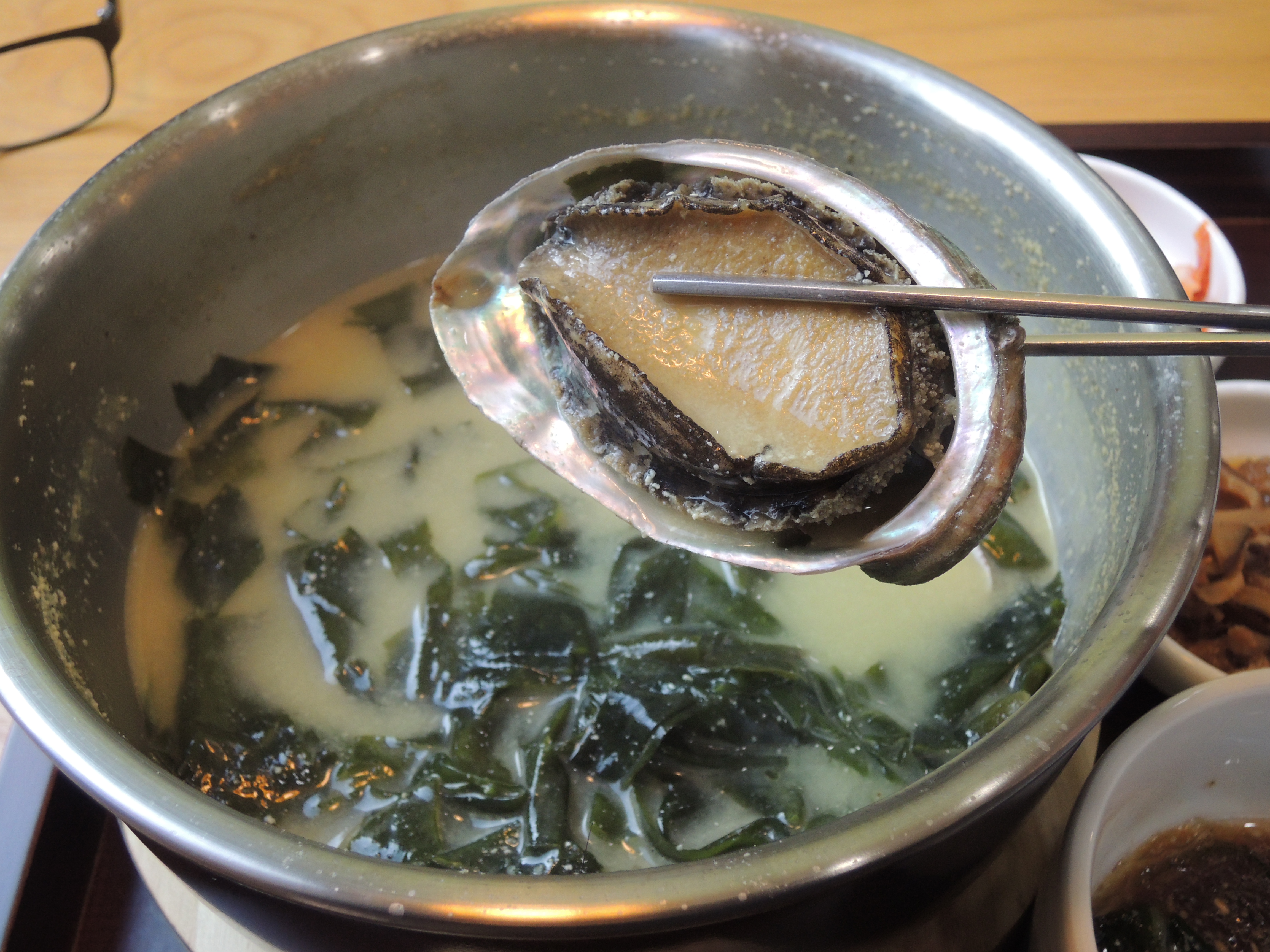 주문한 전복완도미역국이 나왔어요.