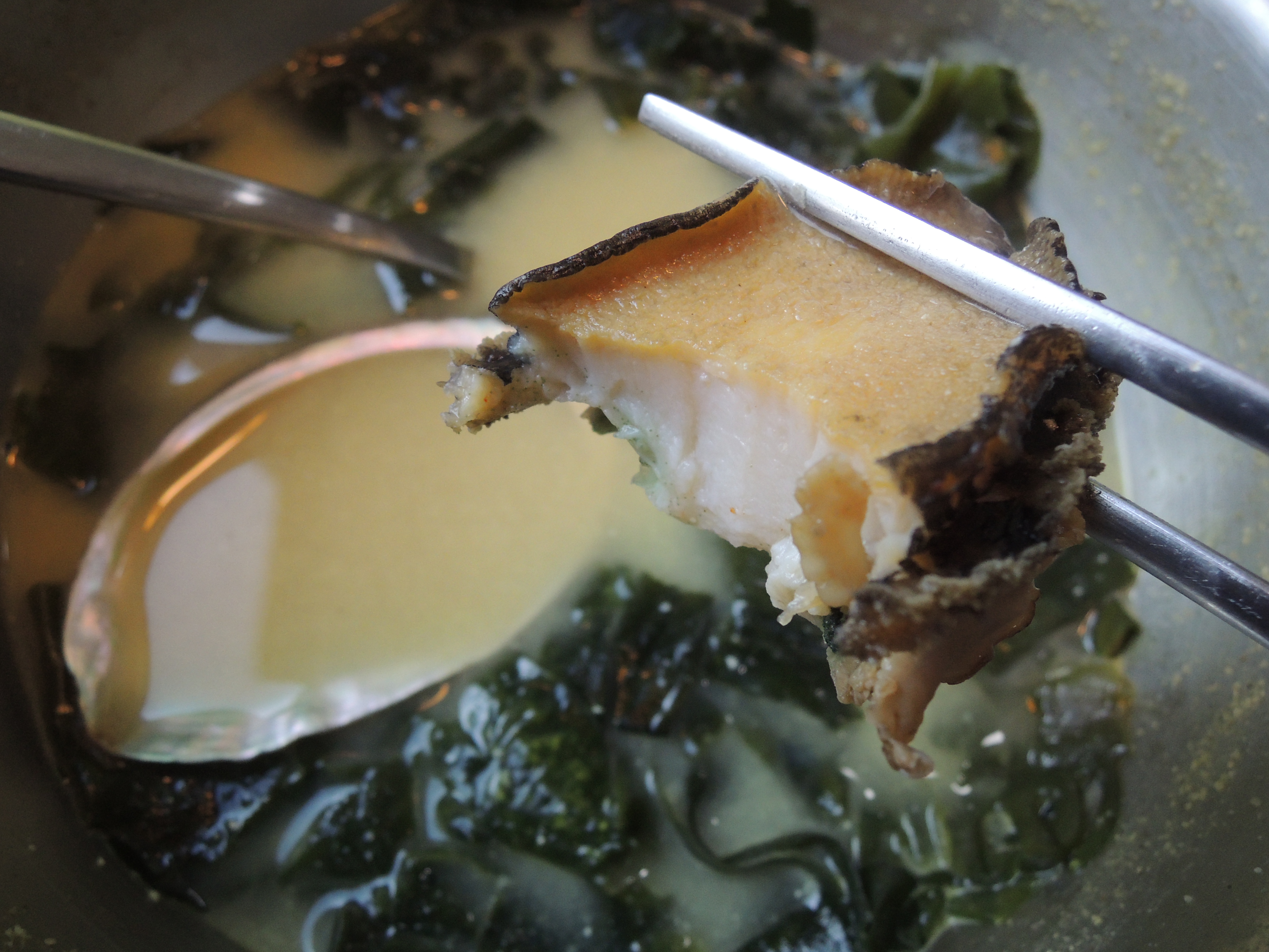 맛있는 전복이 들어있어요. ㅎㅎ 전복이 딱딱하지않고 부드러운 식감에, 전복내장도 비리지않아서 통째로 맛있게 먹을 수 있어요 :)