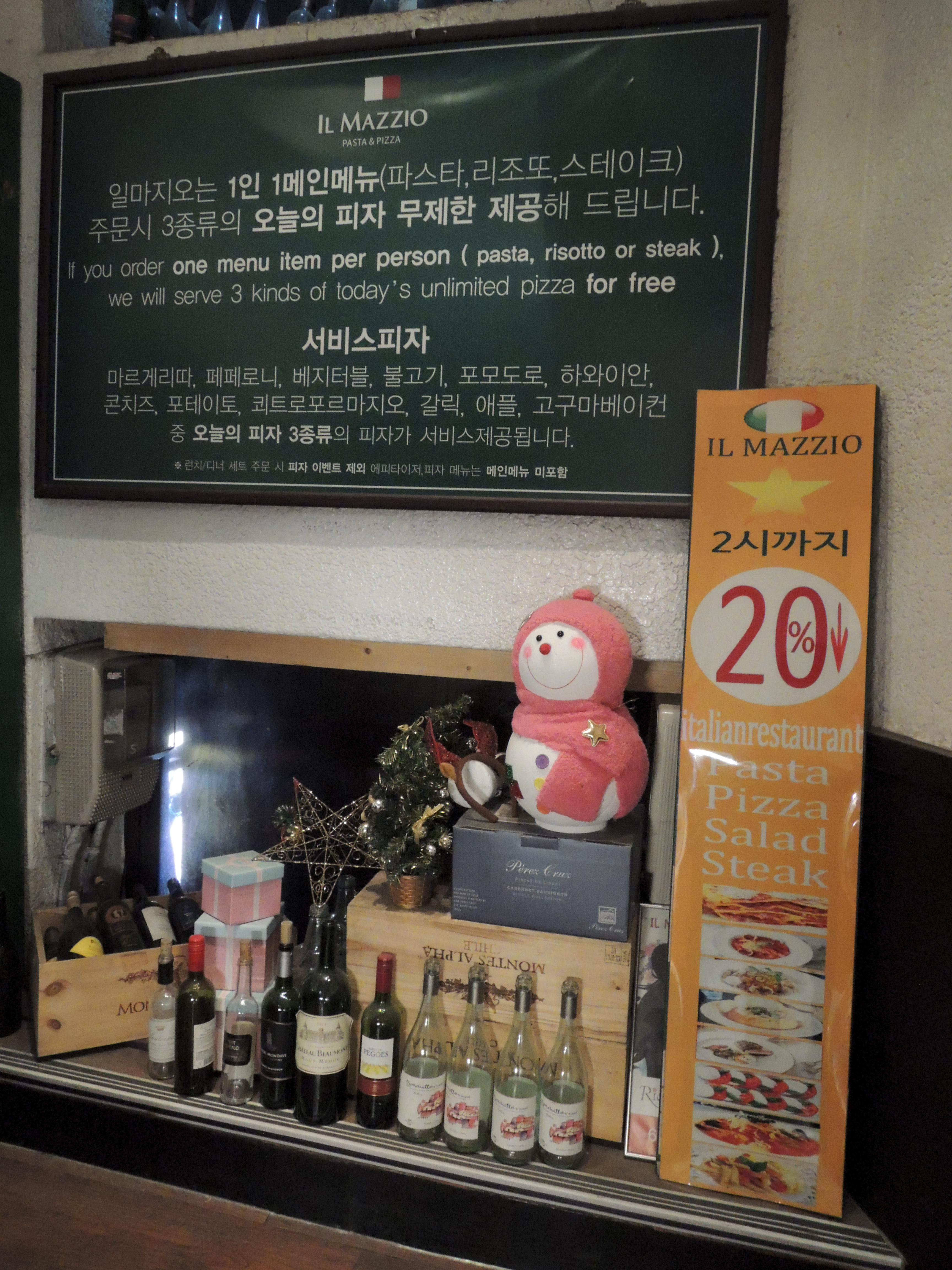 일마지오는 명동에 위치한 이탈리아 레스토랑으로 1인1메뉴를 주문하면, 3~5종류의 피자를 무한리필로 먹을 수 있는 맛집이에요.