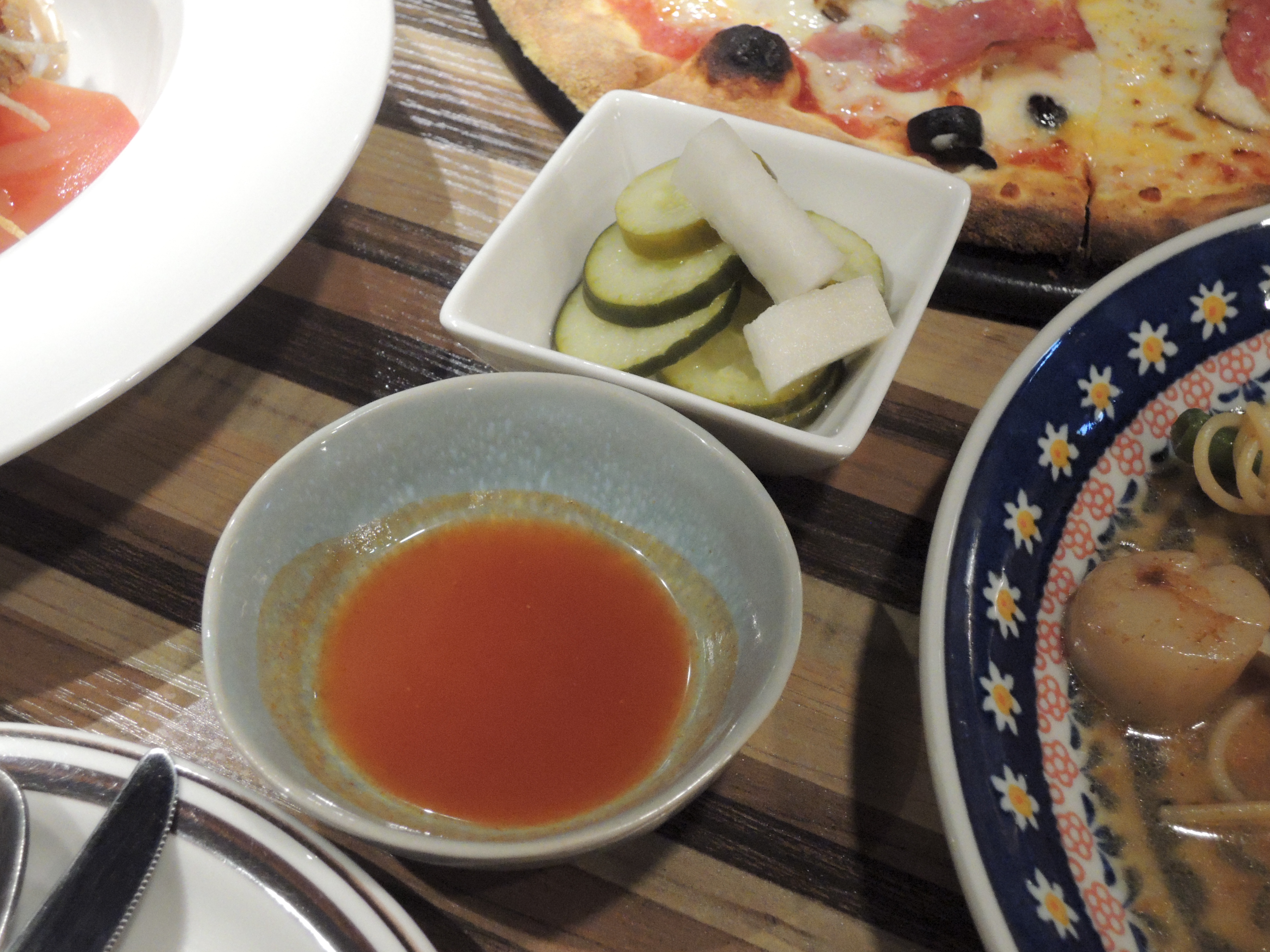 피자에 곁들일 핫소스와 피클이에요 ㅎ