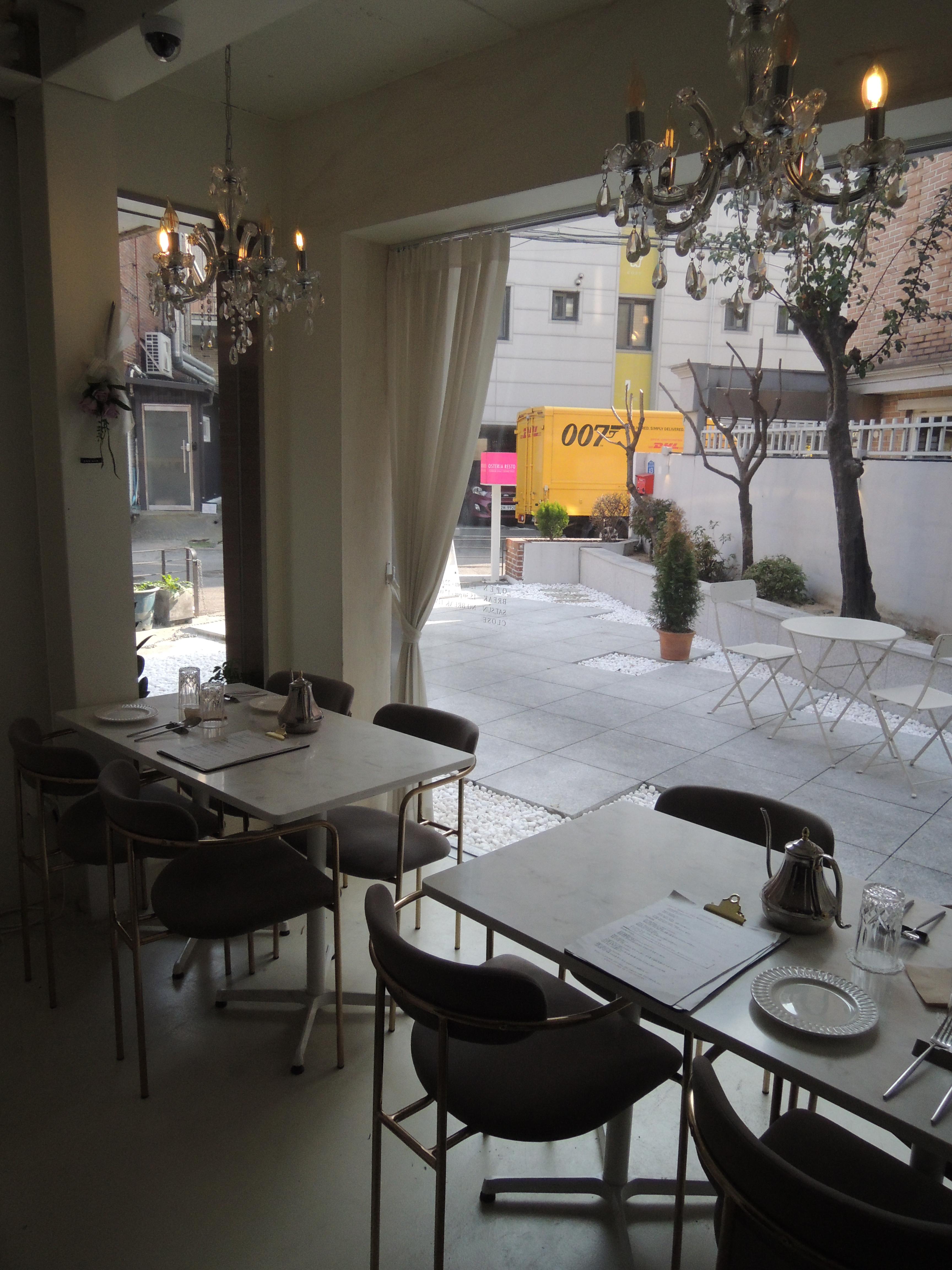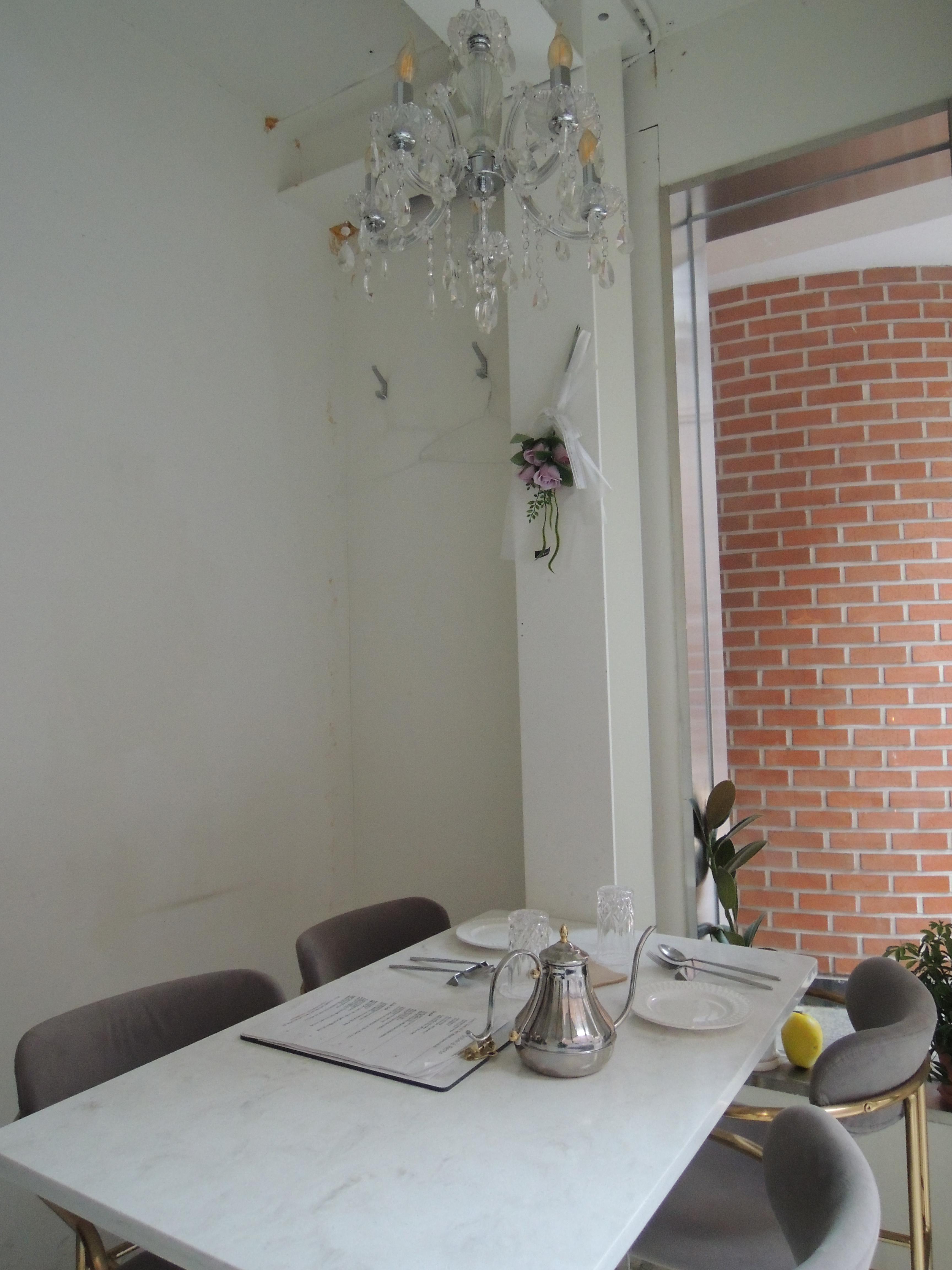 창가쪽테이블입니다. 샹들리에 조명이 멋집니다.