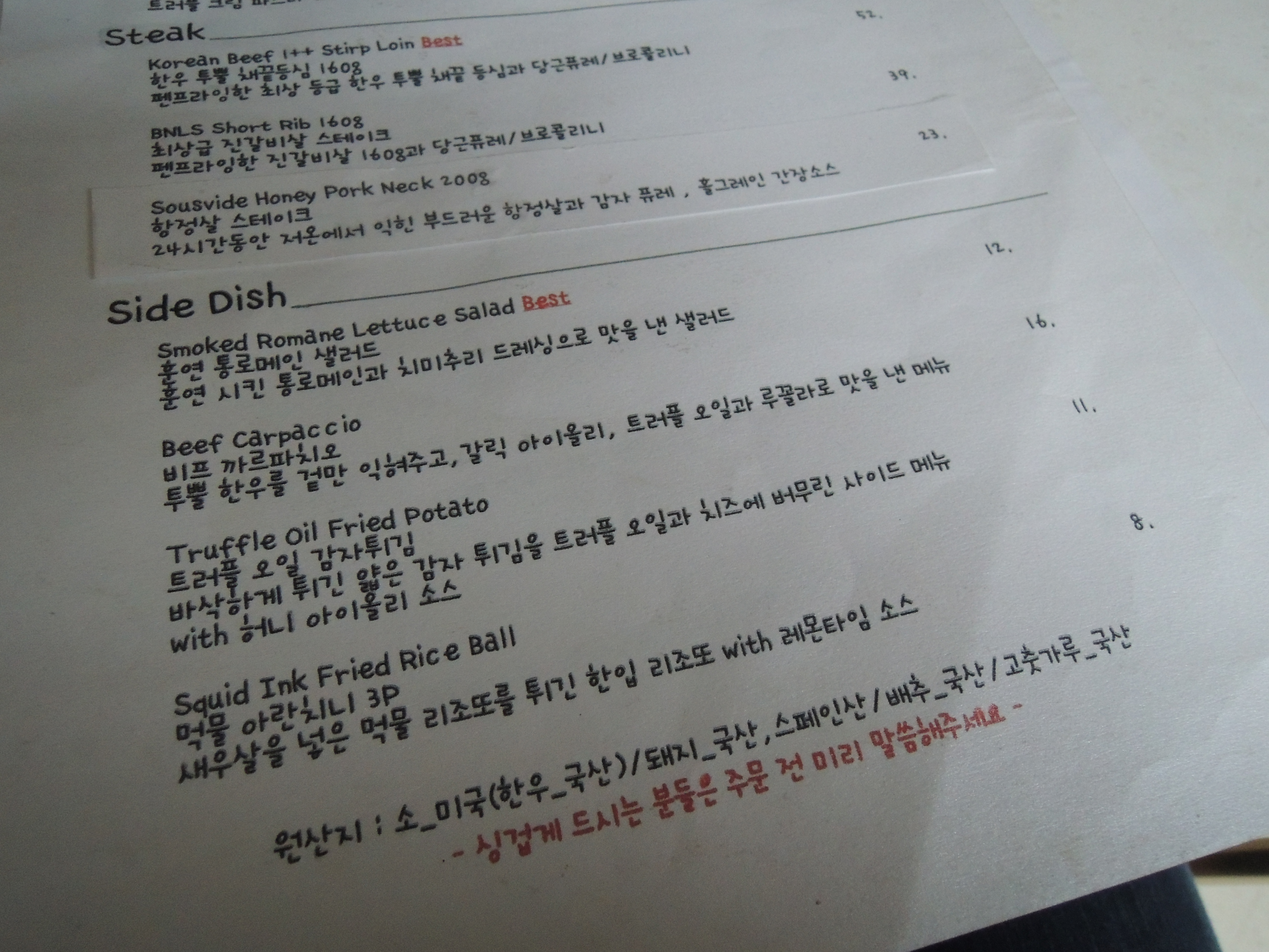 음식이 정말! 맛있어요. 가격대가 좀 있긴 하지만 그만한 가치를 합니다. 분위기도 좋고, 연남동 소개팅, 또는 데이트 장소로 손색이 없네요. 특히 항정살 스테이크는 꼭 드셔보세요. 부드러운식감이 아직도 선하네요.