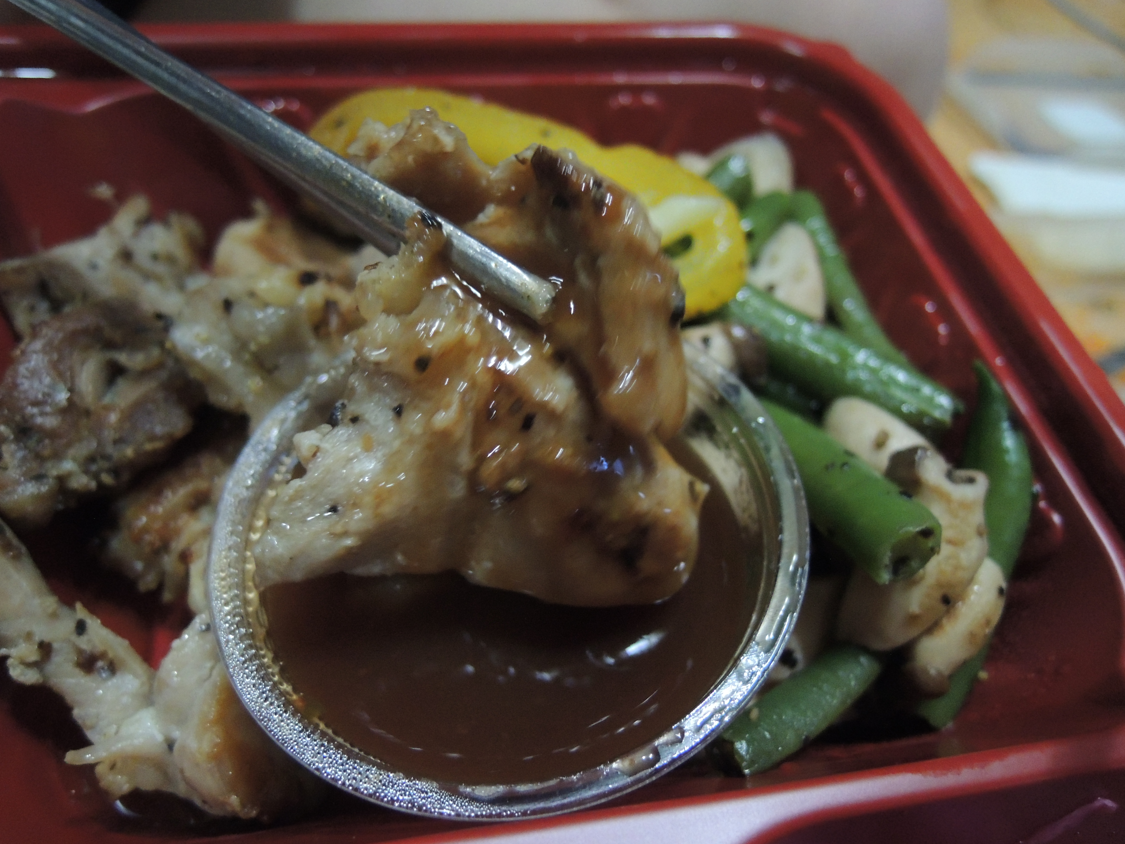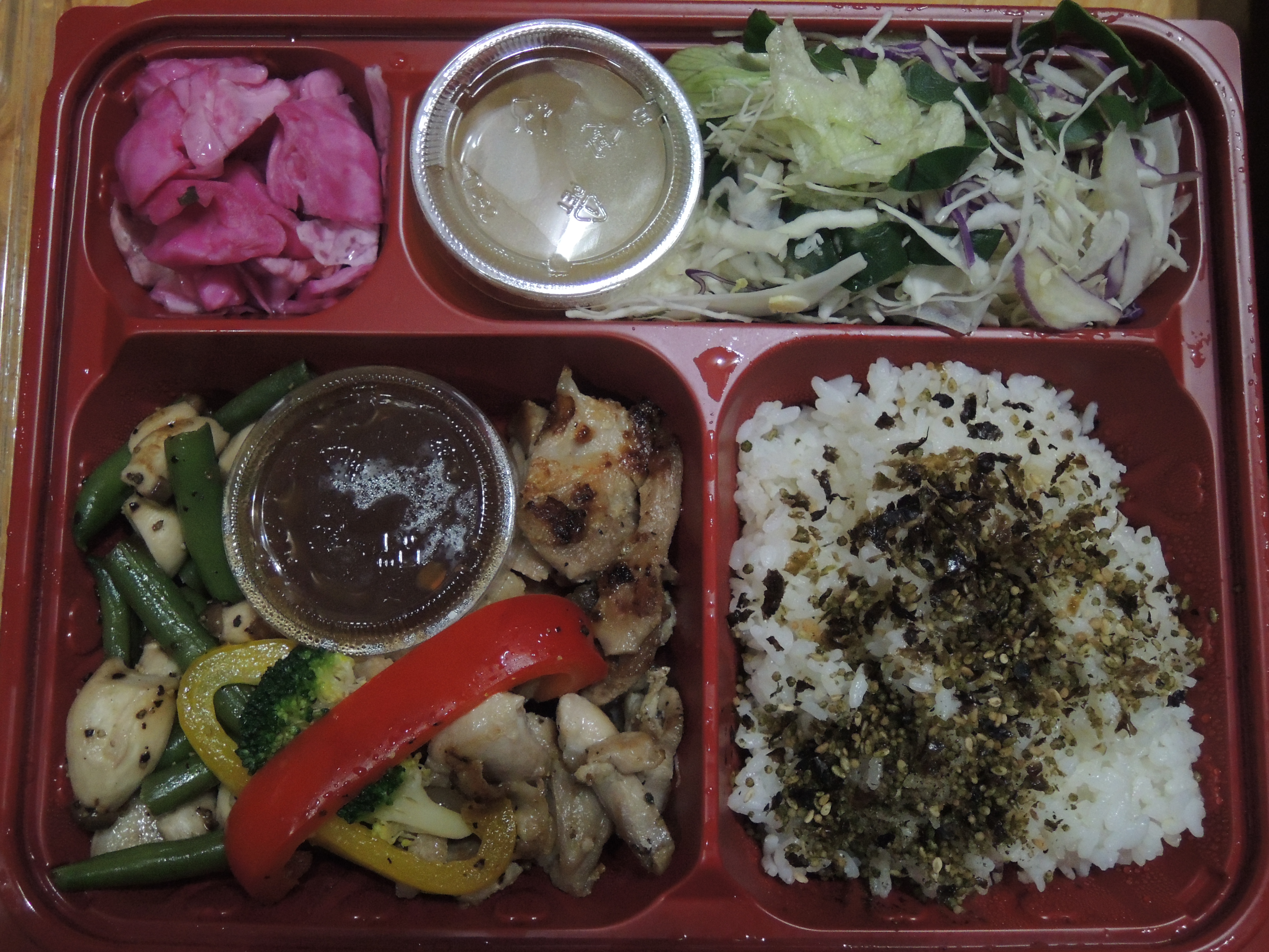 그릴에 구운치킨과 포크스테이크 도시락이에요.