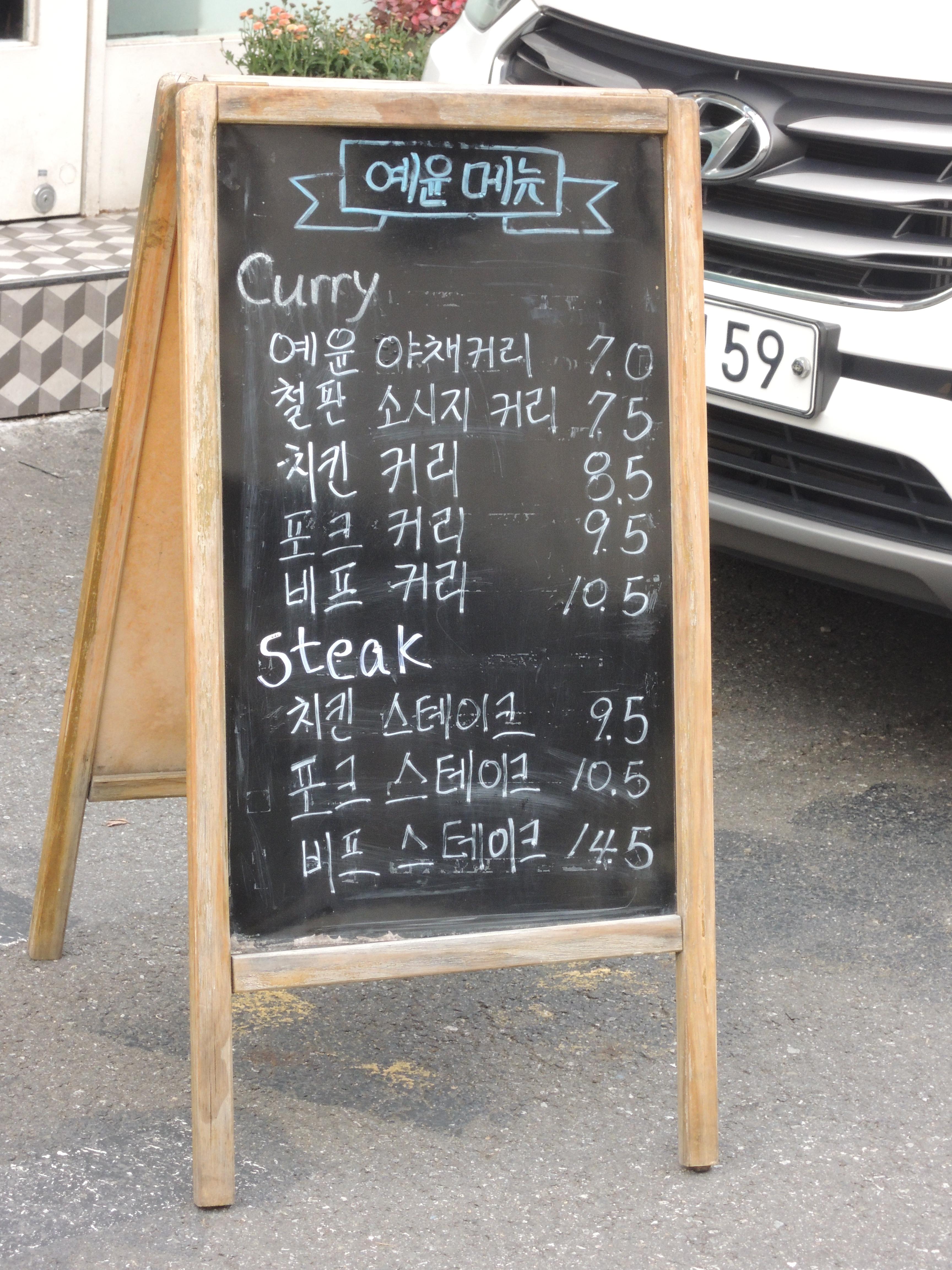 매장 앞에 메뉴가 표시되어 있어요. 가격대도 비싸지 않고 부담없는거 같아요.