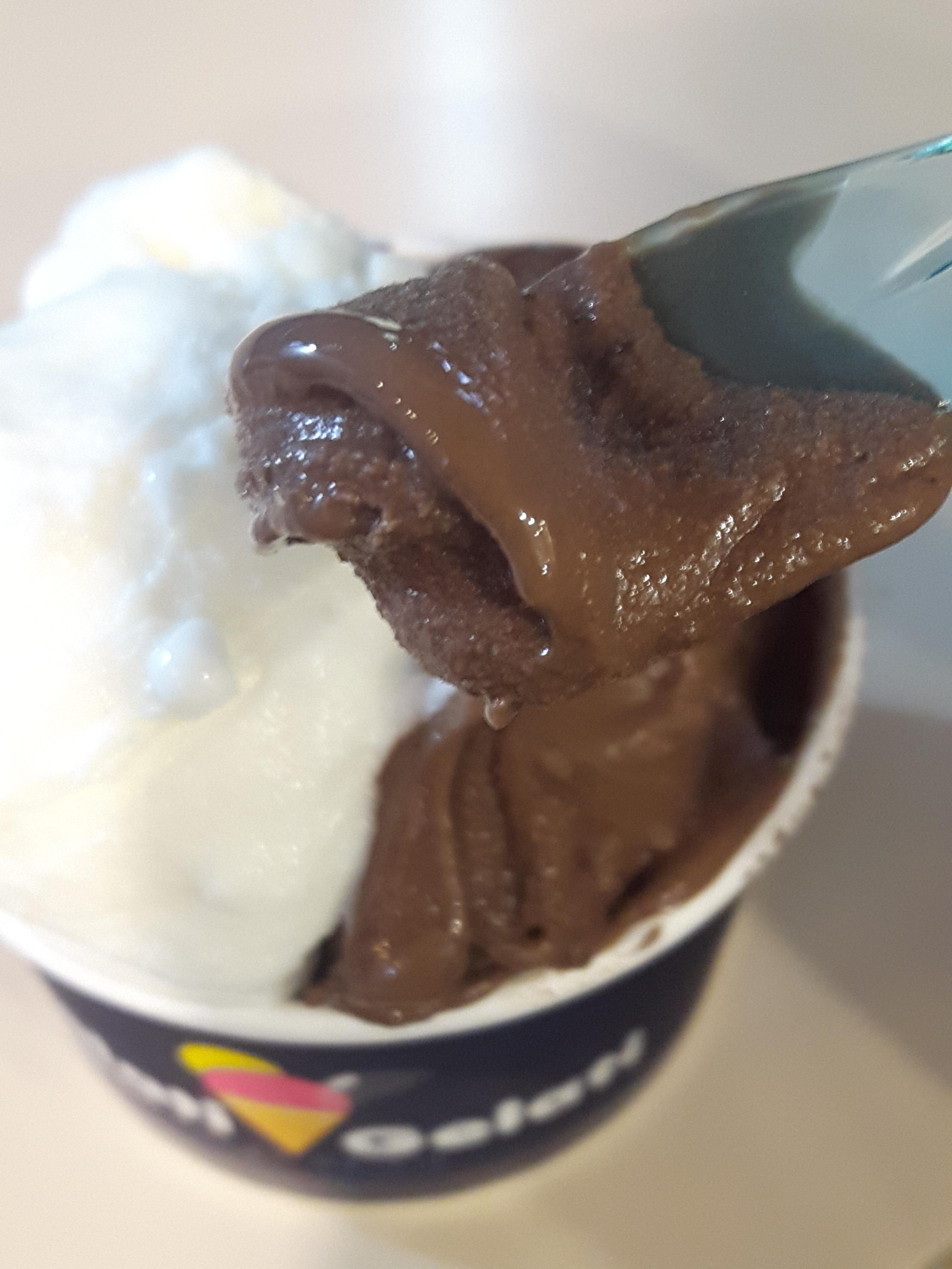 저는 이천쌀콘하고 초코 젤라또 아이스크림 주문했어요. 왼쪽 하얀색이 이천쌀콘, 오른쪽이 쇼콜라에요. ㅎㅎ