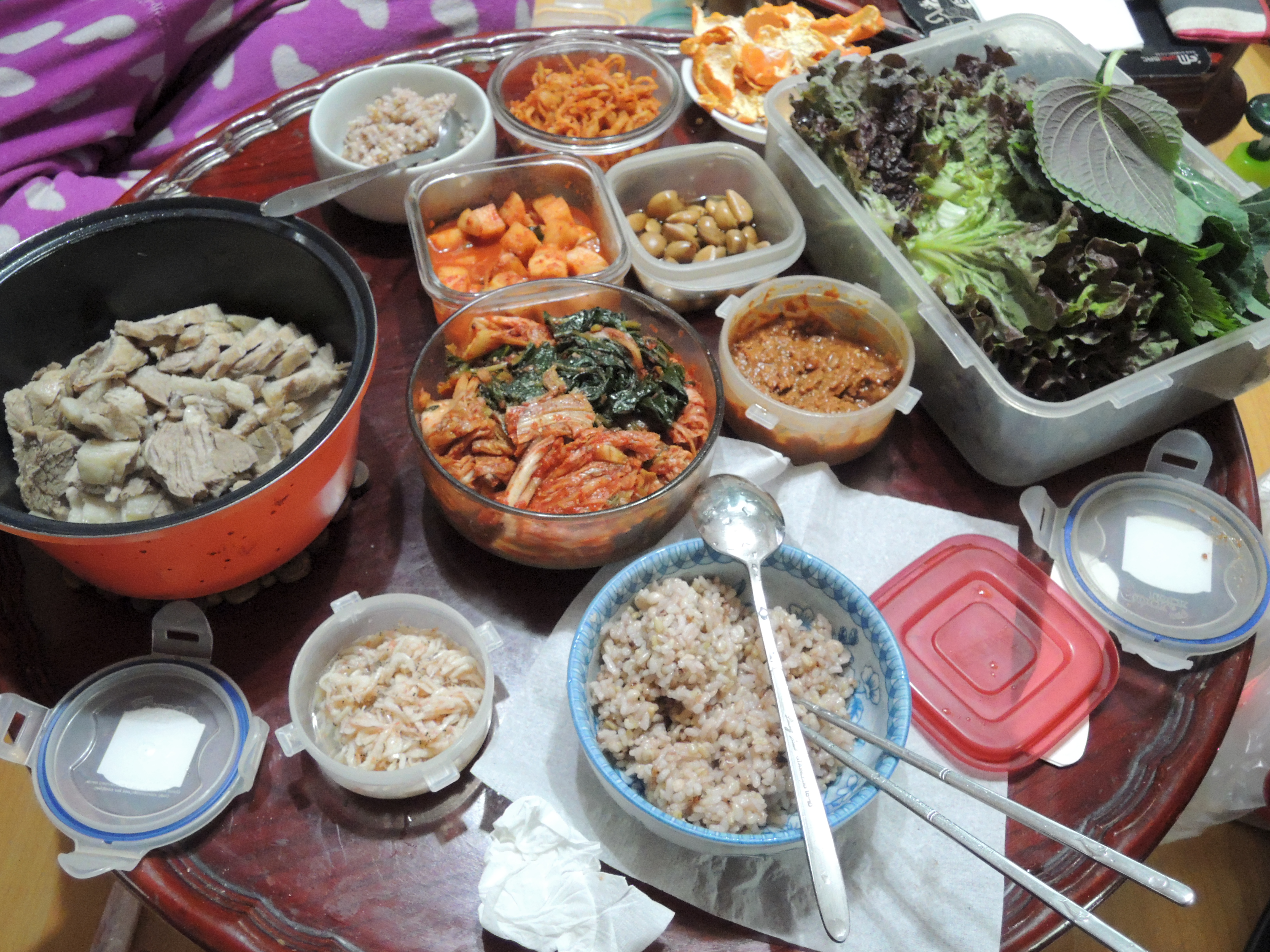 가끔 집에서 가족이 한상에 모여 삼겹살수육을 먹곤 합니다.